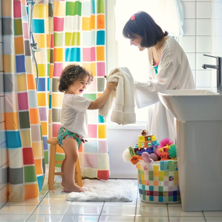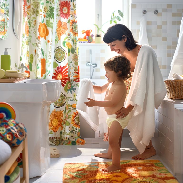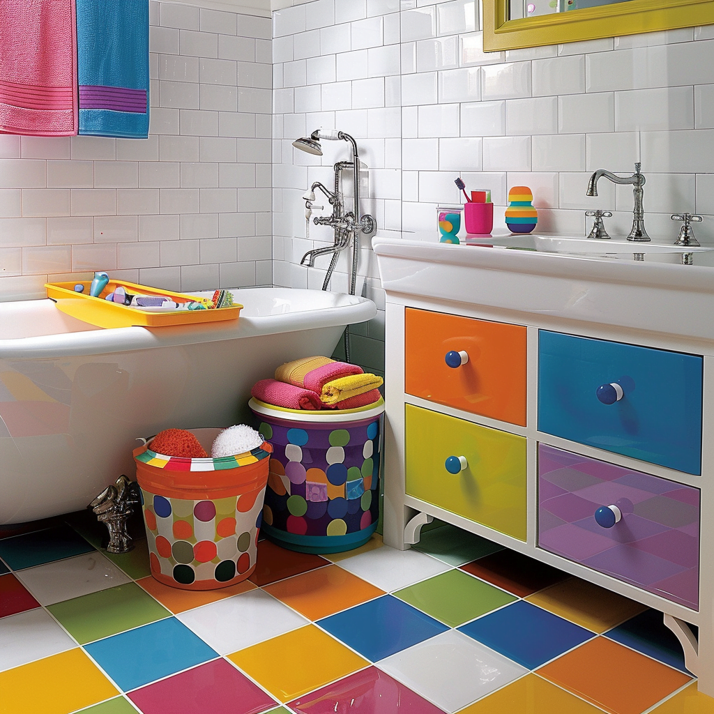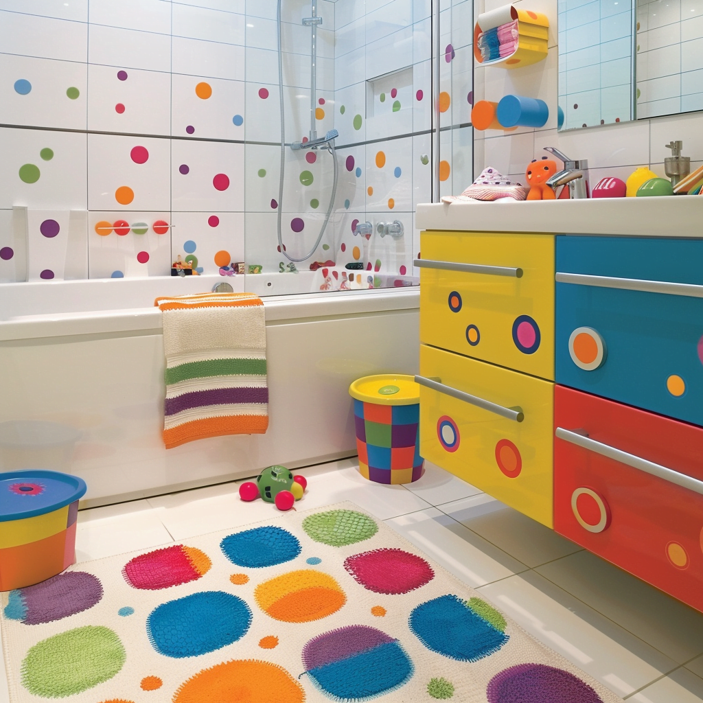 Consider adding a shower curtain adorned with polka dot patterns or a large piece of jungle-themed art. These elements will spark your child’s sense of adventure and imagination, making the bathroom a delightful and inspiring place.