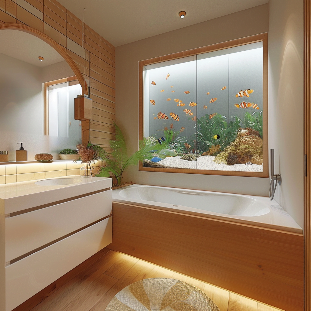 One fun way to add kids bathroom ideas for boys and girls is with a fish theme. This can be done by adding a child’s painting of a cute aquatic animal, or you can also achieve it by adding an actual fish wall sculpture to their bathroom!