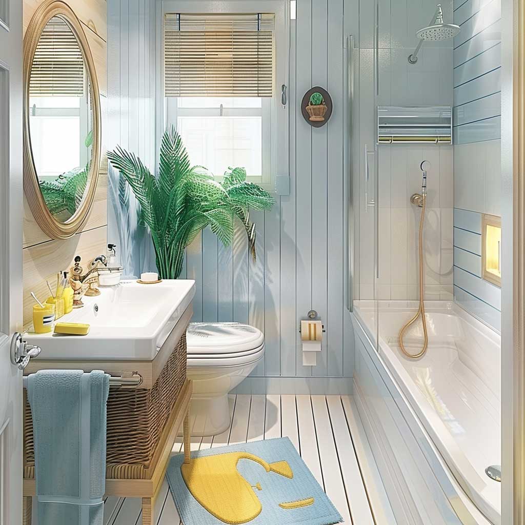 To bring this theme to life, consider adding thematic pictures or paintings, such as seaside landscapes or whimsical cartoon characters. Another creative touch is to wrap rope around various elements in the bathroom, adding a sense of adventure and whimsy that your child will adore. Dive into this imaginative theme, and you’ll find endless kids’ bathroom ideas that are perfect for both boys and girls!