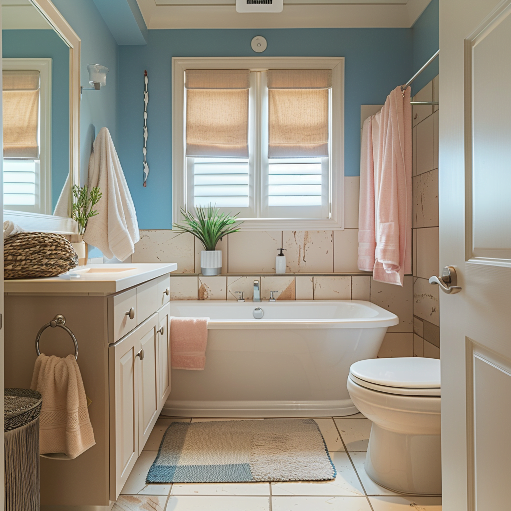 Pastels are a timeless and delightful choice for kids’ bathrooms, especially for little girls who adore pink. These soft, inviting colors create a warm and welcoming atmosphere, encouraging your child to enjoy spending time in the bathroom.