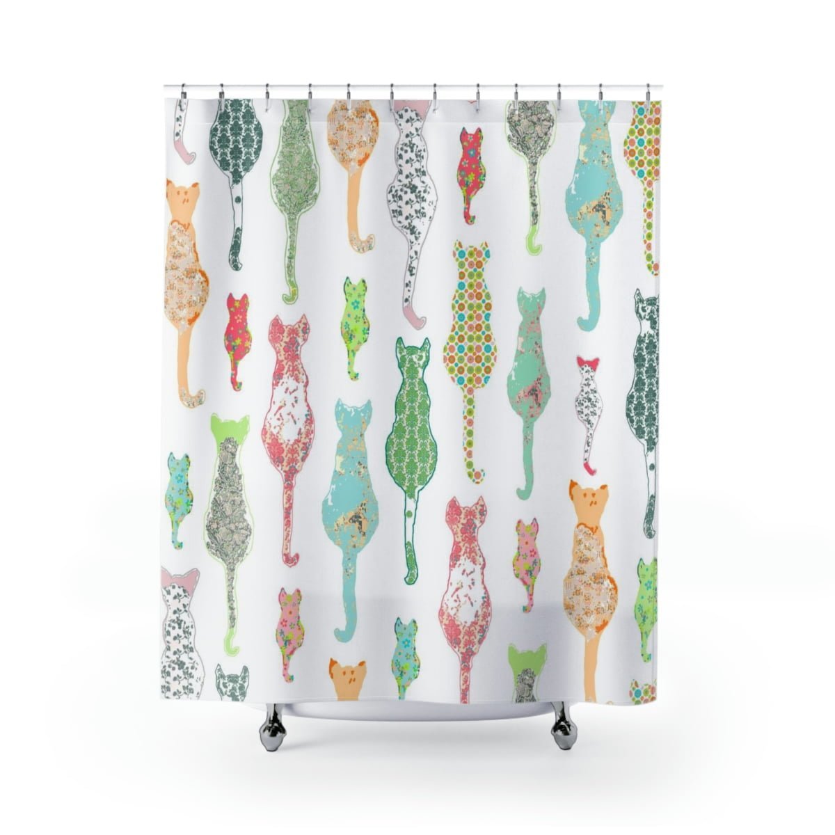 Fun cat themed bathroom now. Love how the items all coordinate. Love the shower curtain! It's so much fun.