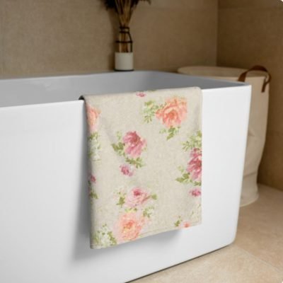 $35.70 – $182.90Price range: $35.70 through $182.90Shabby Chic Farmhouse Style Bath & Hand Towel Set With Beige & Pink Painterly Blurred Rose Floral Print – Velour And White Cotton Terry Loop Back