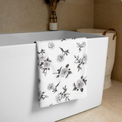 $35.70 – $182.90Price range: $35.70 through $182.90Bath Towel Set: Chic Contrast with Hand-Drawn Black Rose Floral Design – Microfiber Velour Front, Absorbent White Cotton Terry Back