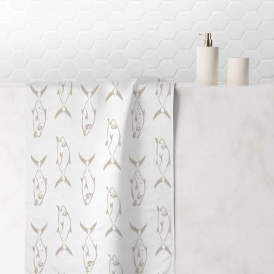$35.70 – $182.90Price range: $35.70 through $182.90Coastal Fish Patterned Beach, Bath & Hand Towel Set: Modern Abstract Bathroom Design in Beige & White