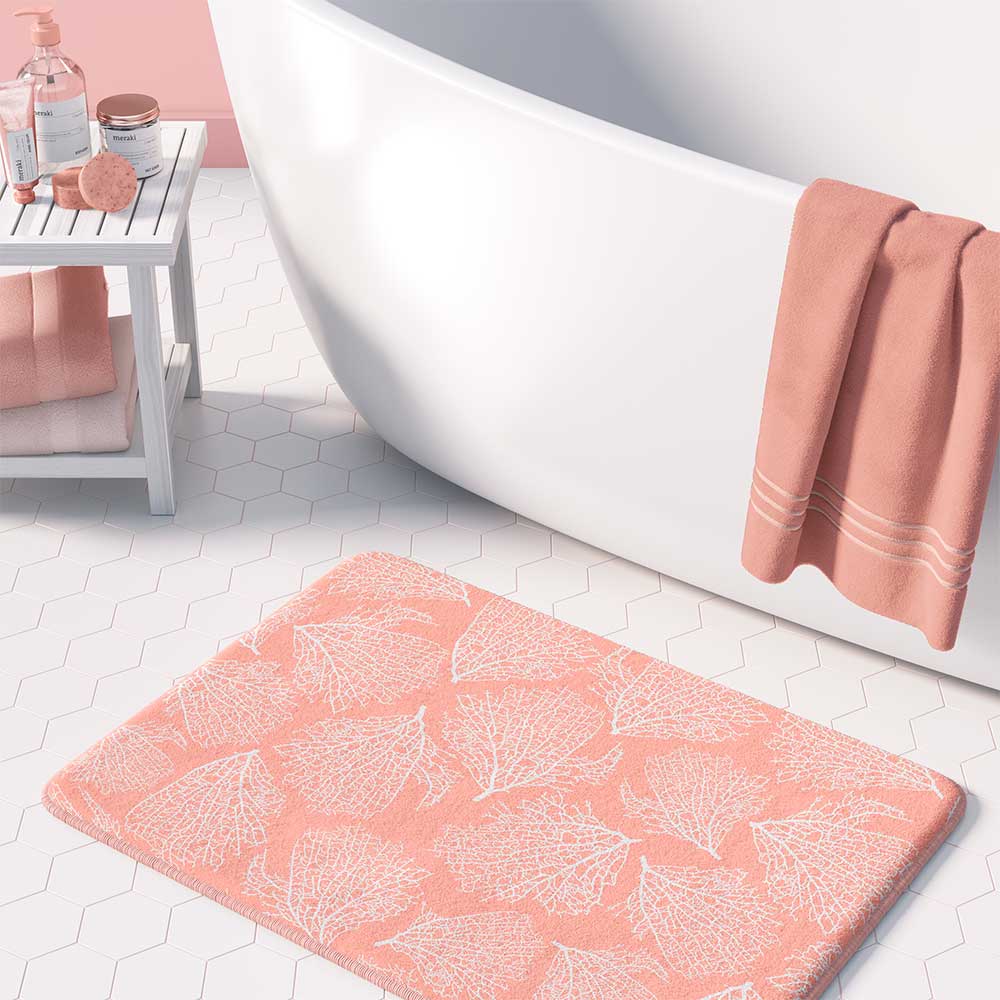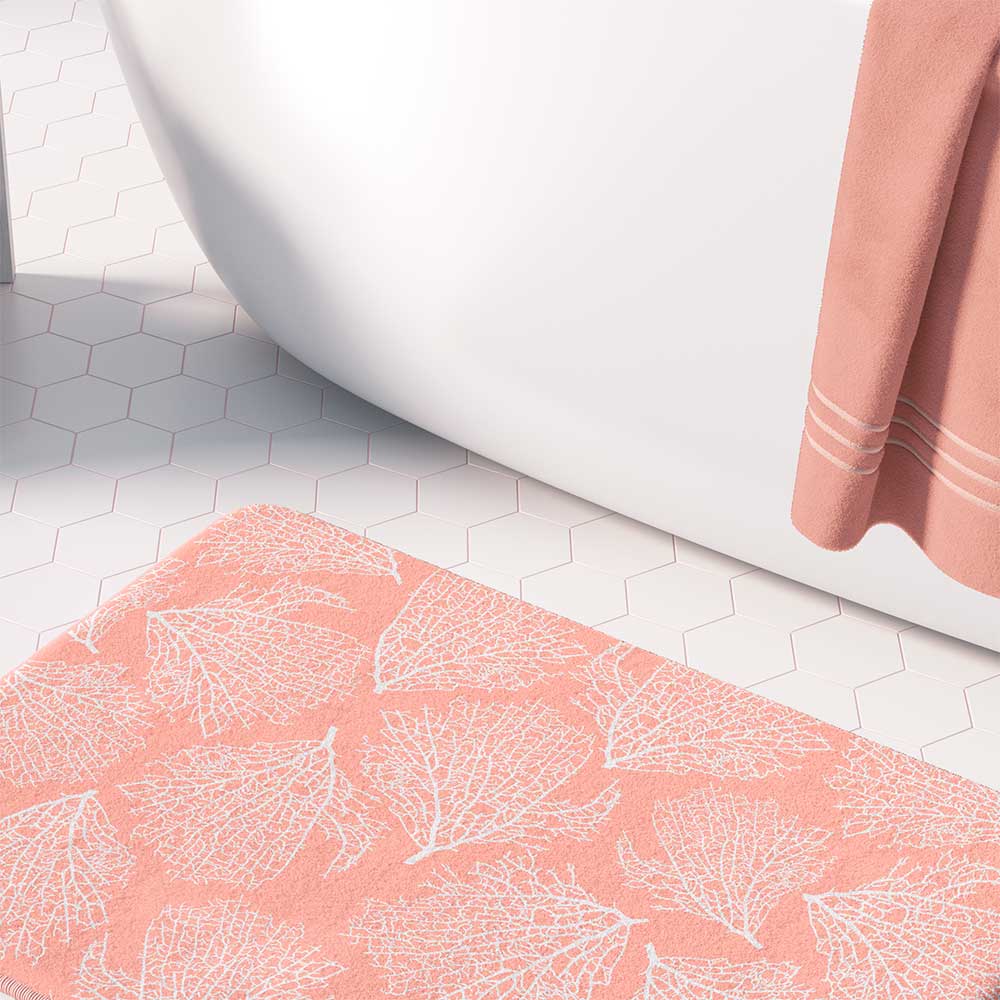 Coastal Coral Bath Mat – Pink Plush Microfiber, Non-Slip