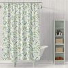Artist Designed Green Floral Shower Curtain With Elegant Watercolor Leaves Printed Waterproof Fabric And 12 Hooks Included