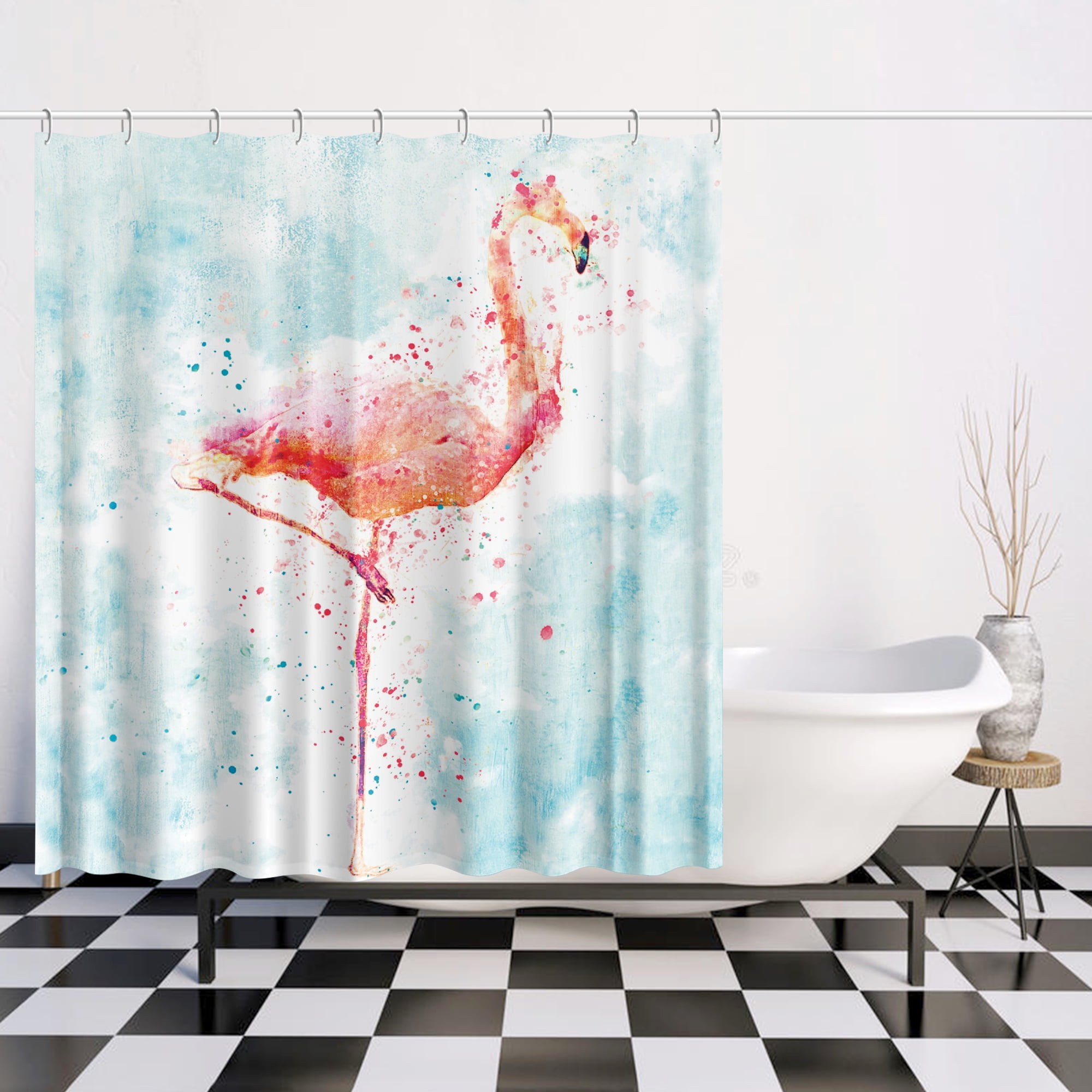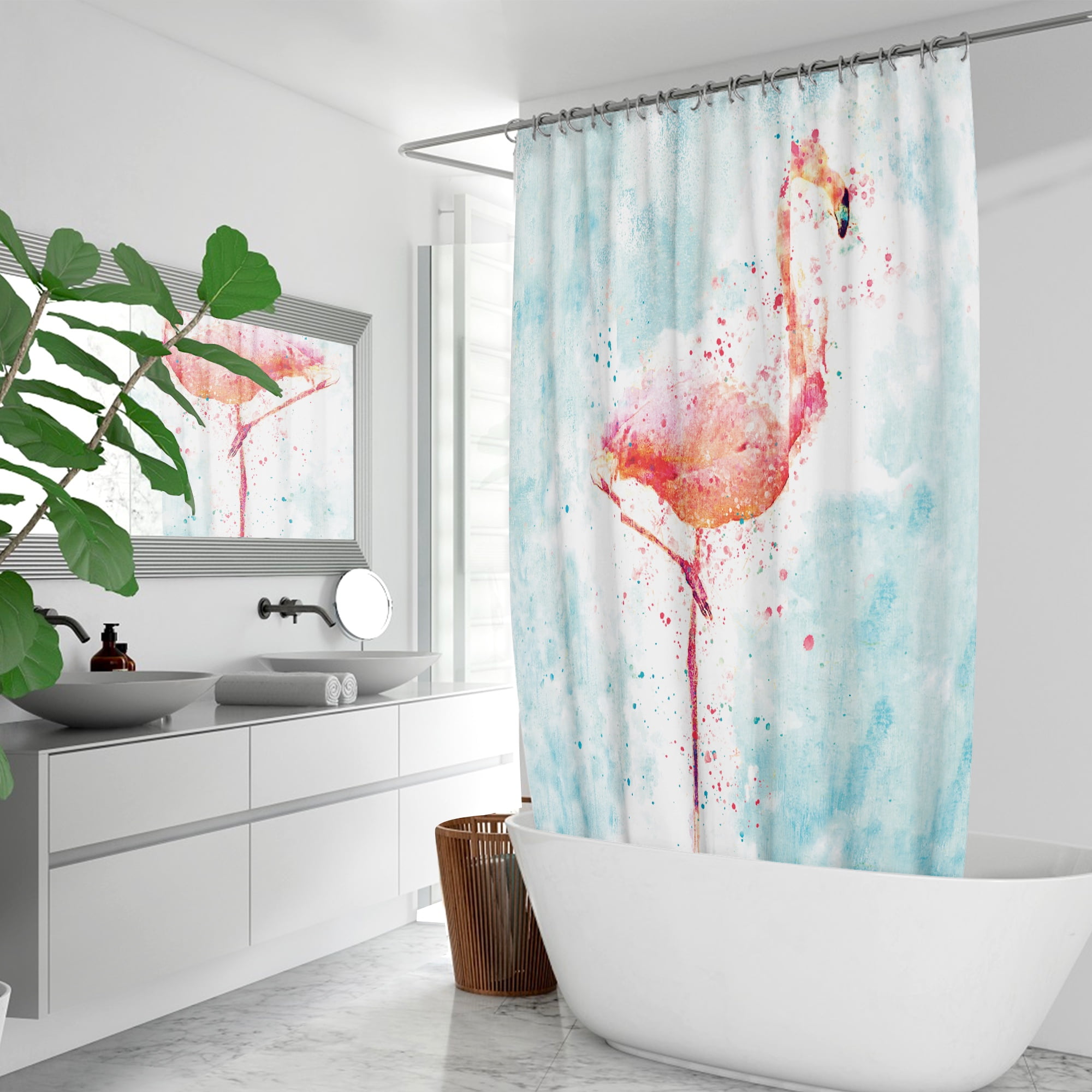 Artist Designed Waterproof Shower Curtain With Elegant Blue And Pink Flamingo Print – Washable, Mold & Mildew Resistant With 12 Hooks Included