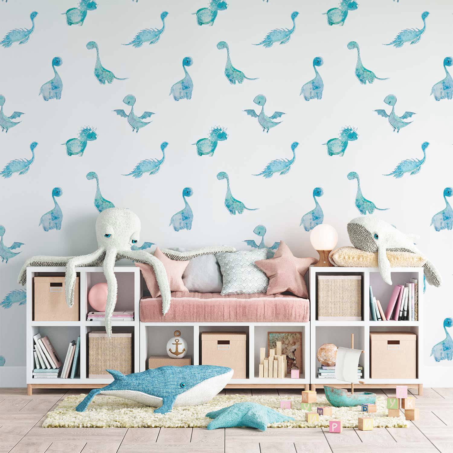 Dinosaur Wallpaper for Blue Boys Rooms