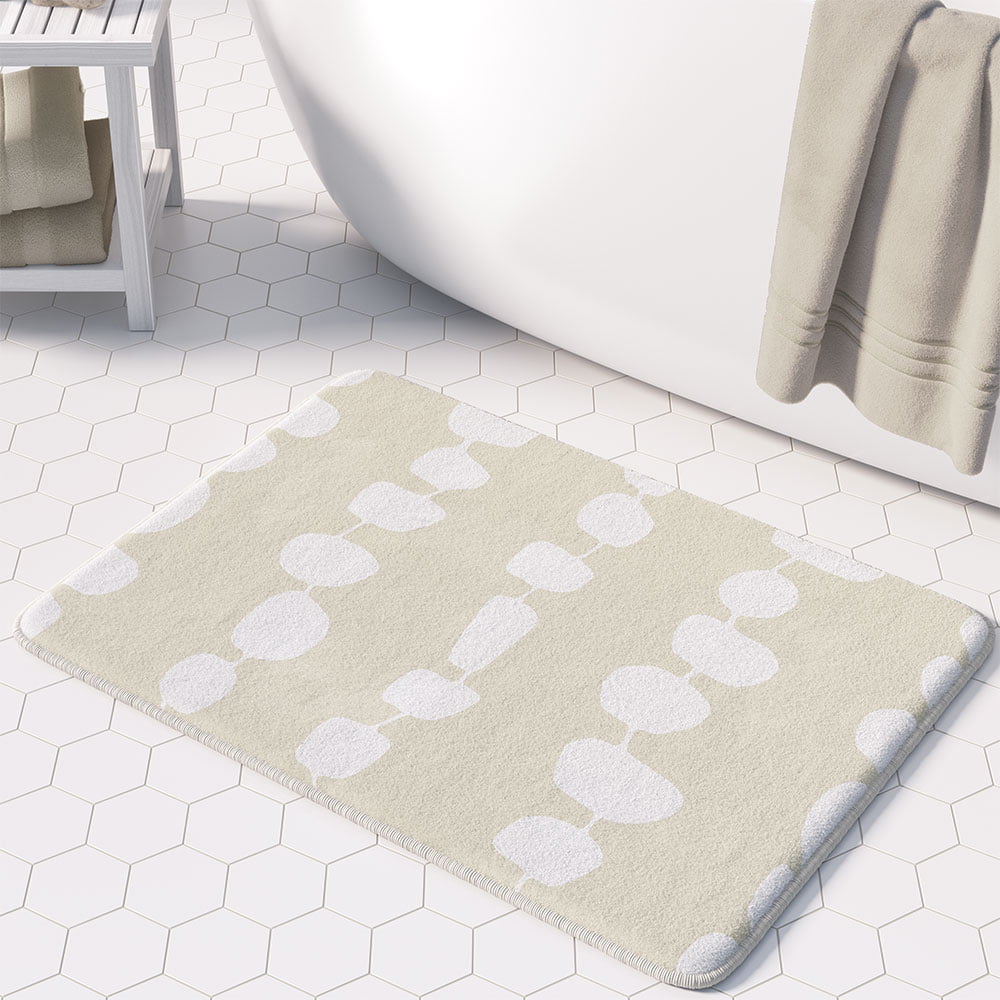 Beige And White Coastal Pebble Stripe Non Slip Bath Mat – Quick Drying, Super Absorbent, Mold Resistant Soft Microfiber