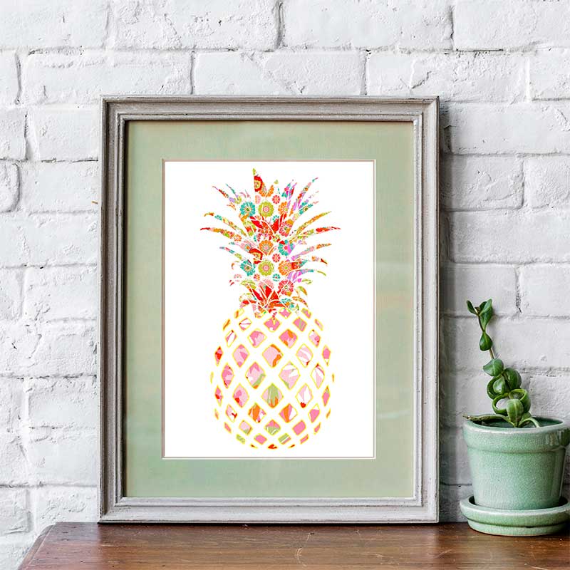 It’s the perfect way to add color, fun, and personality to dull walls, creating a cheerful space your family will love. This bold pineapple print combines tropical vibes with modern abstract design, making it a standout piece for brightening kids’ bathrooms or beach-inspired spaces.