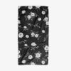 Black and White Bath Towels With White Rose Floral Printed Velour Face And Cotton Terry Back