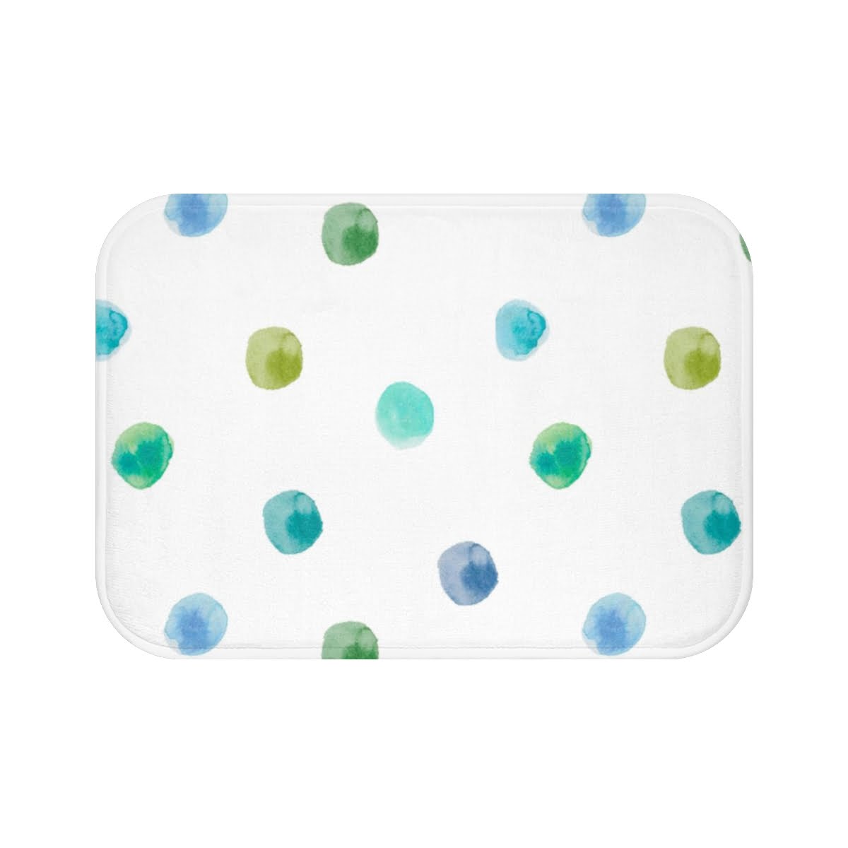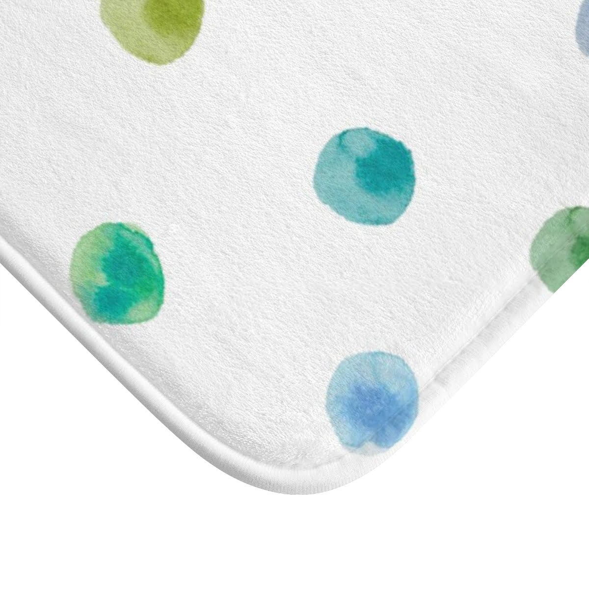 Kids Non-Slip Bath Mat – Blue & Green Polka Dots, Soft Memory Foam