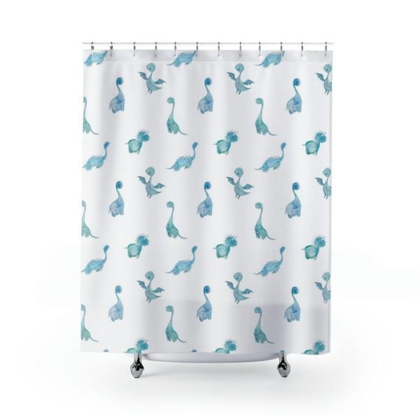 PREMIUM Cute Blue Dinosaur Shower Curtain For Kids Bathroom – Quality Fabric – 71×74 Inches – Mold & Mildew Resistant – Waterproof