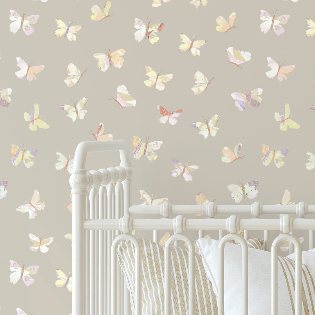 Create a serene and stylish space effortlessly with our Boho Butterfly Beige Wallpaper. Its soft neutral tones and abstract butterfly design bring warmth, elegance, and a modern boho charm to any nursery or kids’ room.
