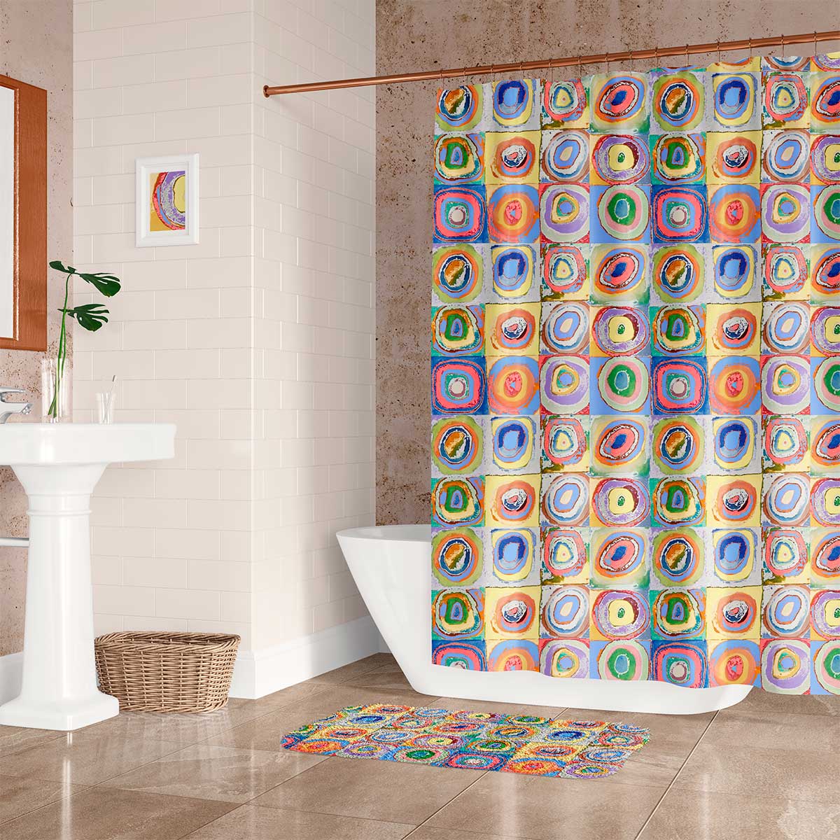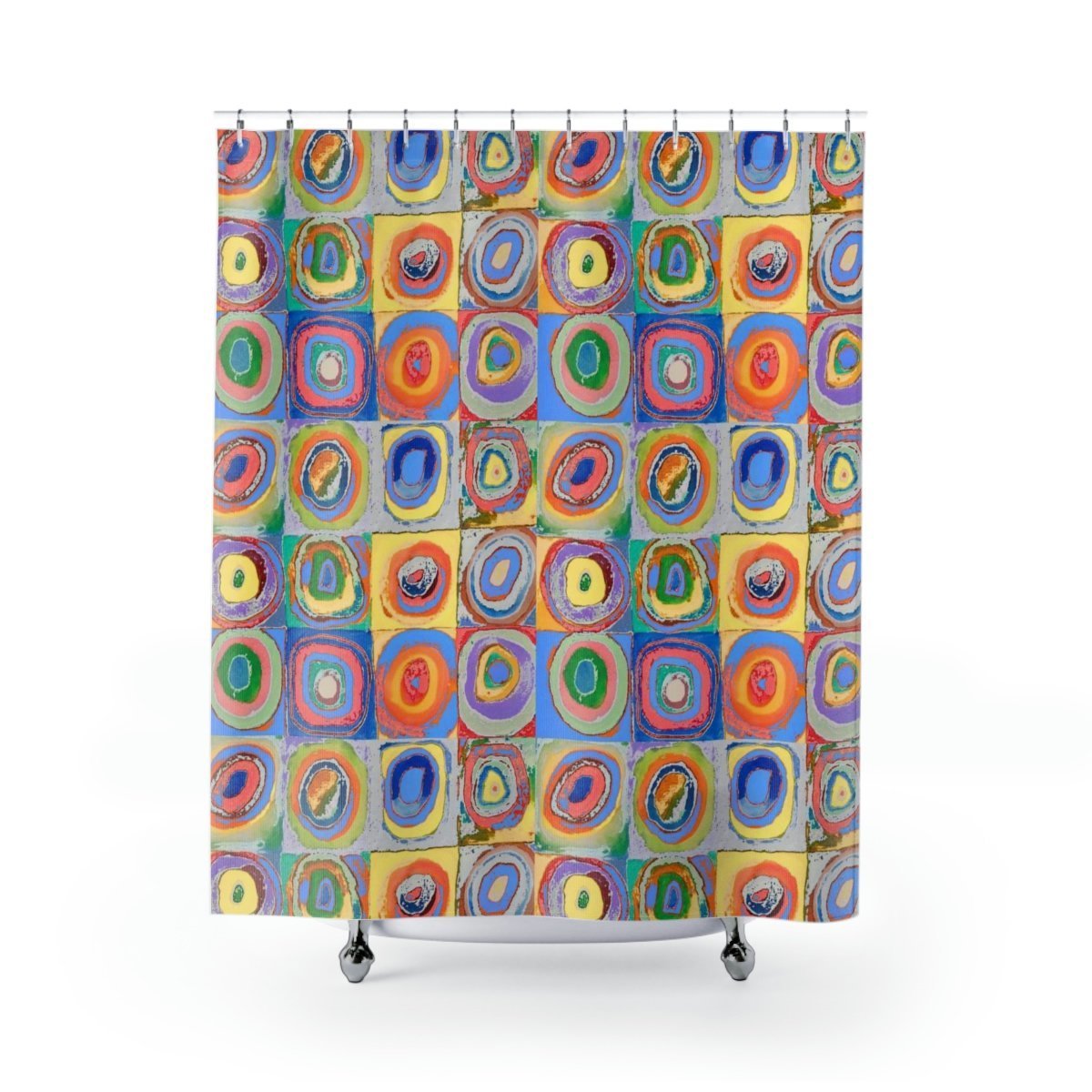 PREMIUM Luxury Fabric Shower Curtain – Mold & Mildew Resistant – Waterproof – 71×74 inches – Colorful Artistic Abstract Circles Design