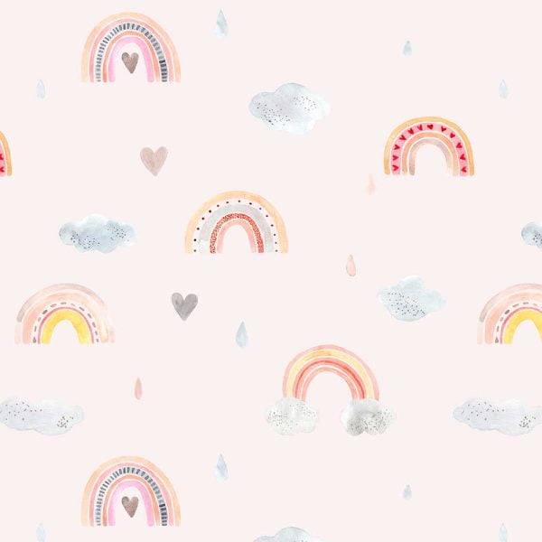Colorful Kids Bathroom Set: Pink Rainbow Shower Curtain, 72×72, Waterproof Polyester Fabric, Includes 12 Hooks