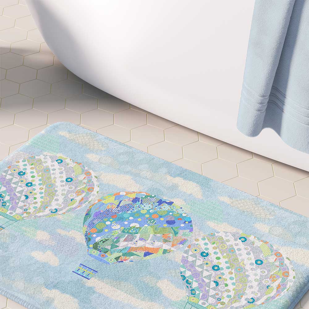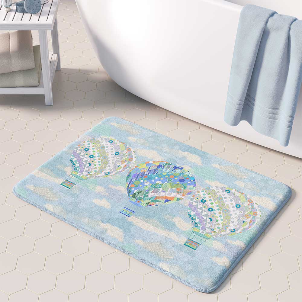 Kids Non-Slip Bath Mat – Toddler Boys & Kids Bathroom Cute Blue Hot Air Balloon