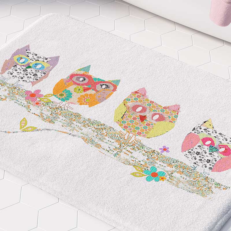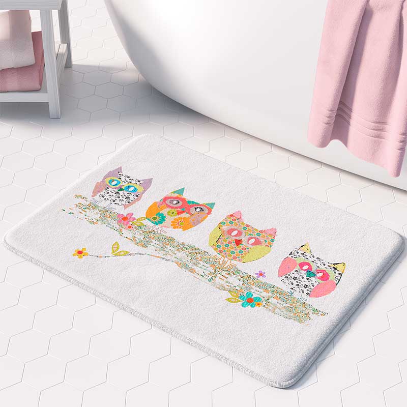 Kids Non Slip Bath Mat with Cute Owl Print