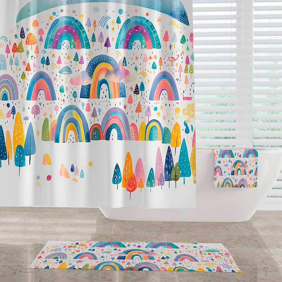 Transform your child’s bathroom with our vibrant, playful rainbow shower curtain. Water repellent, washable, and irresistibly fun, it’s a must-have for magical decor.