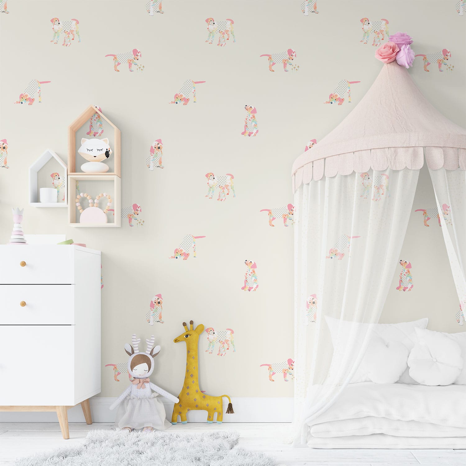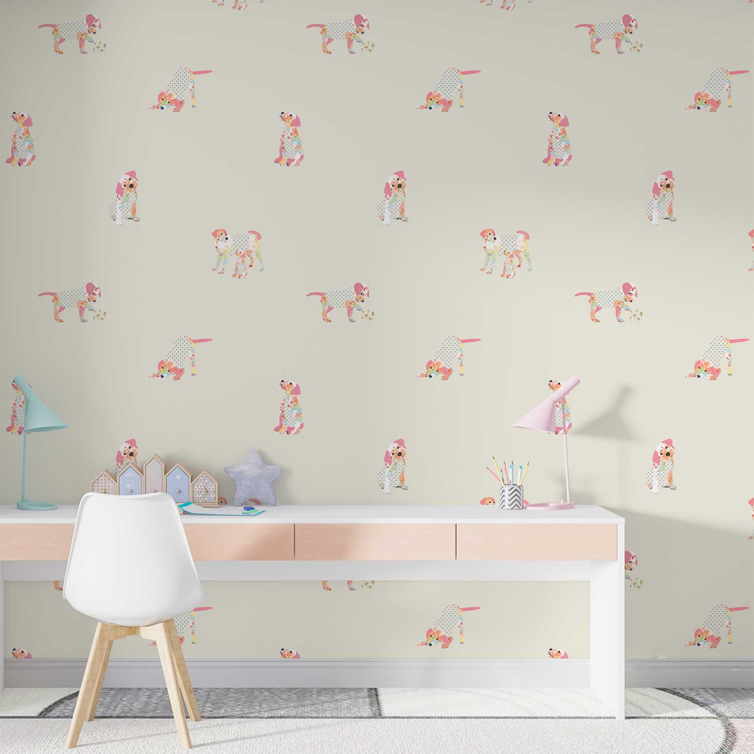 Add a playful charm to your girl’s room with our adorable beige and pink puppy dog wallpaper. Available in peel and stick, traditional, and pre-pasted options, it’s easy to install, durable, and perfect for bedrooms, nurseries, and playrooms. Transform any space with this cute, stylish design today!