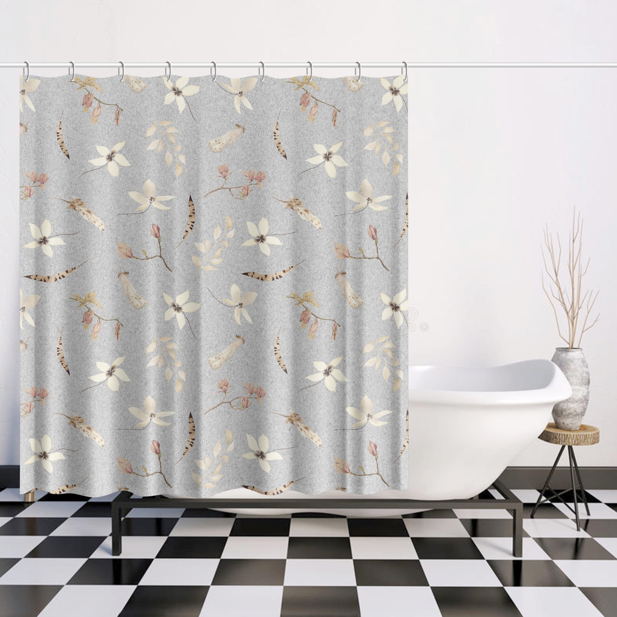 Elegant Artist Designed Gray Floral Shower Curtain With Waterproof Fabric And 12 Hooks Included