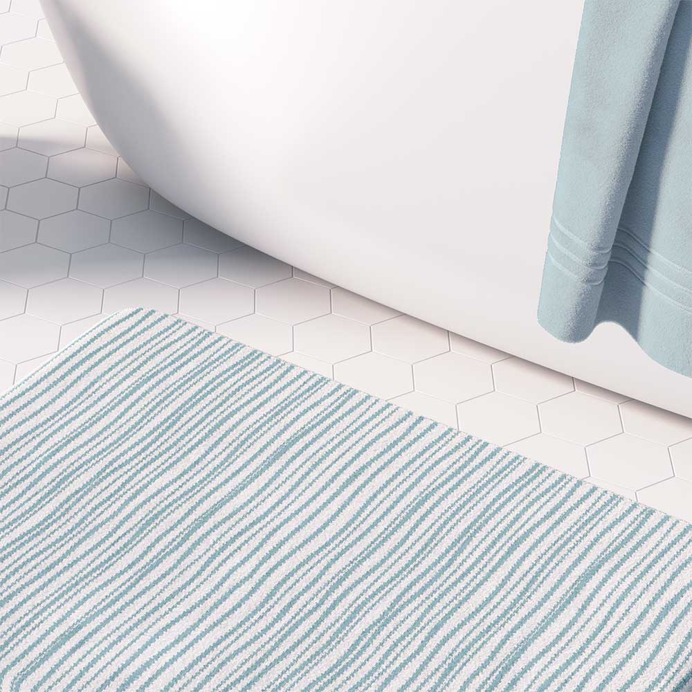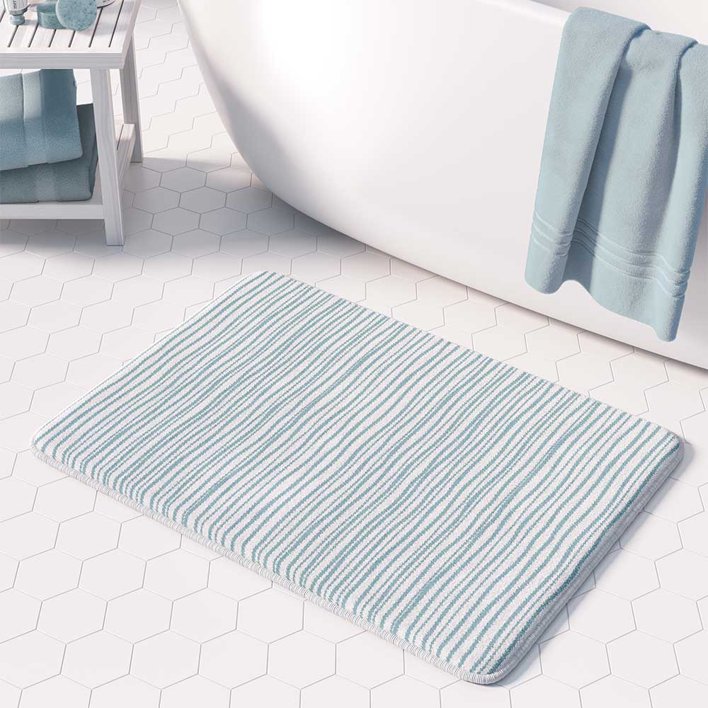 Non Slip Bathroom Mat – Memory Foam Blue Stripes