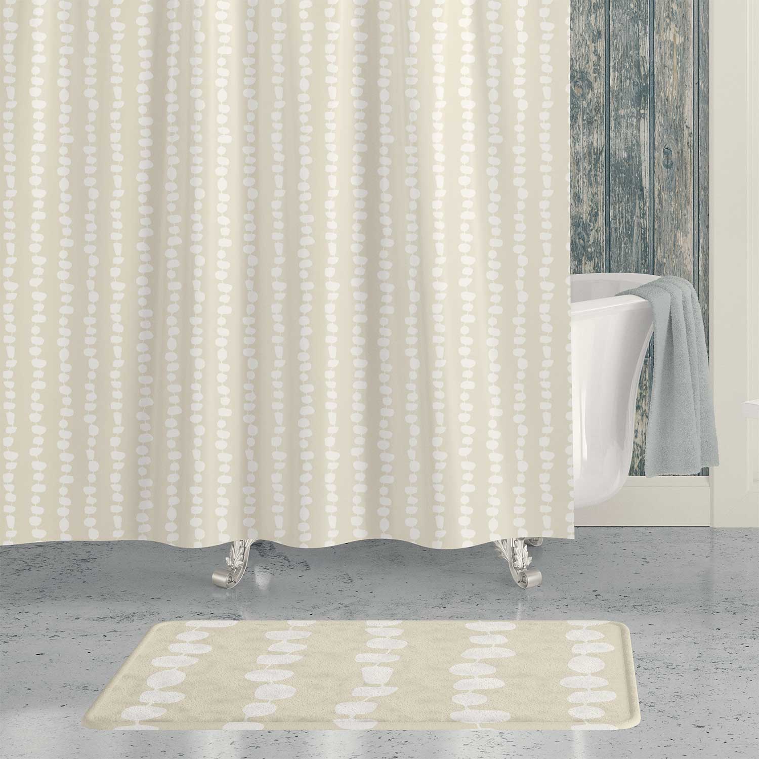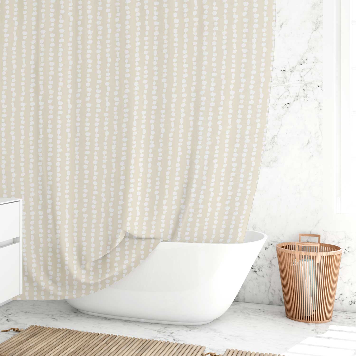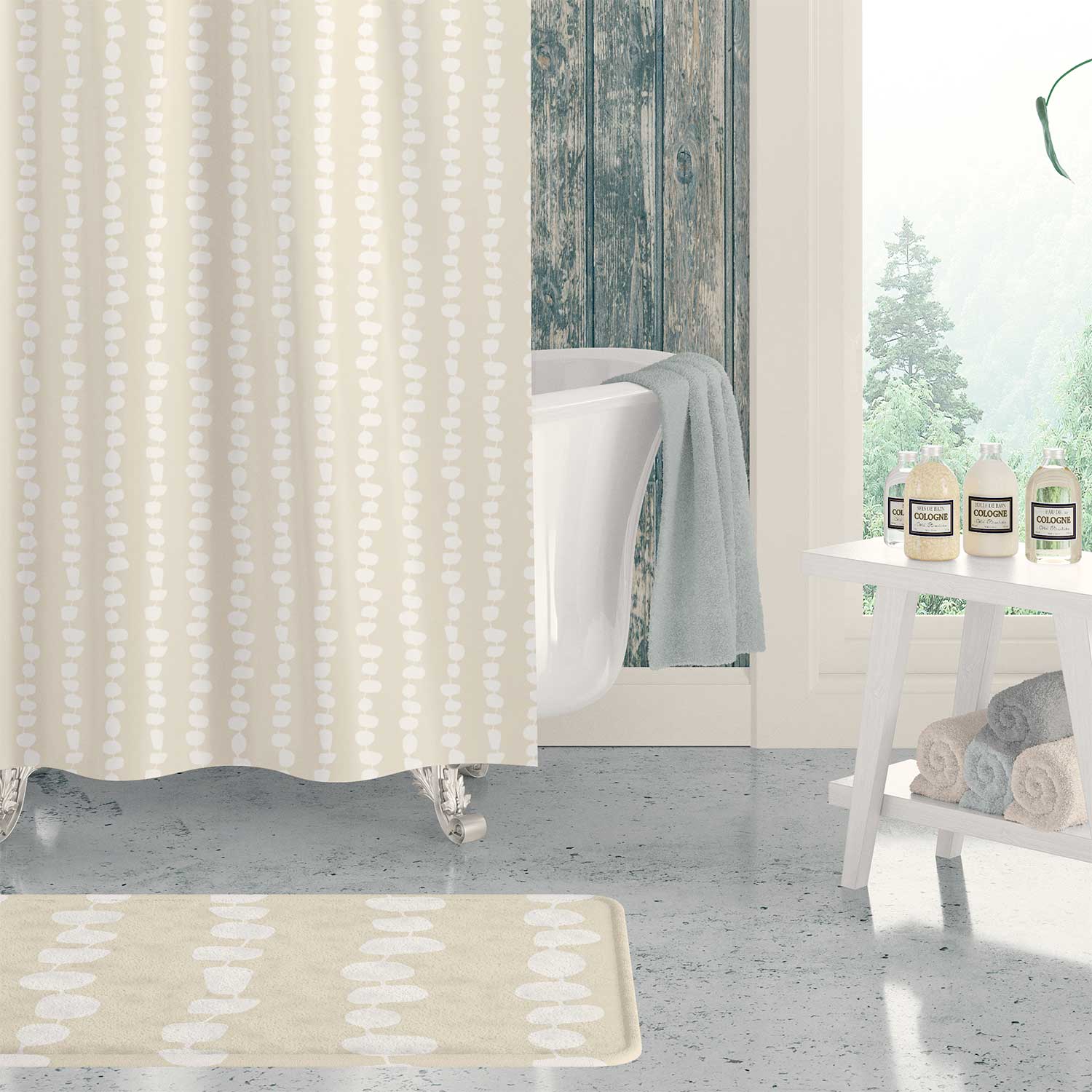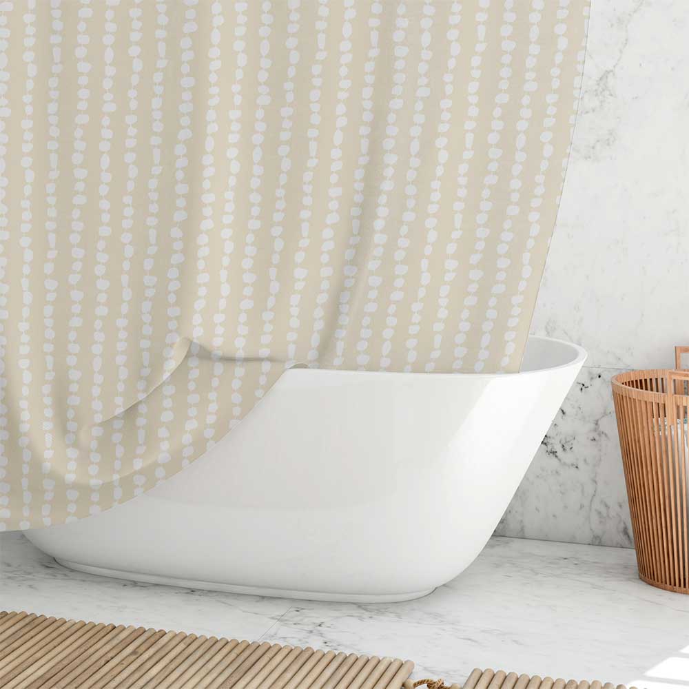 Elevate your bathroom instantly with our elegant, water-repellent coastal pebble striped shower curtain!