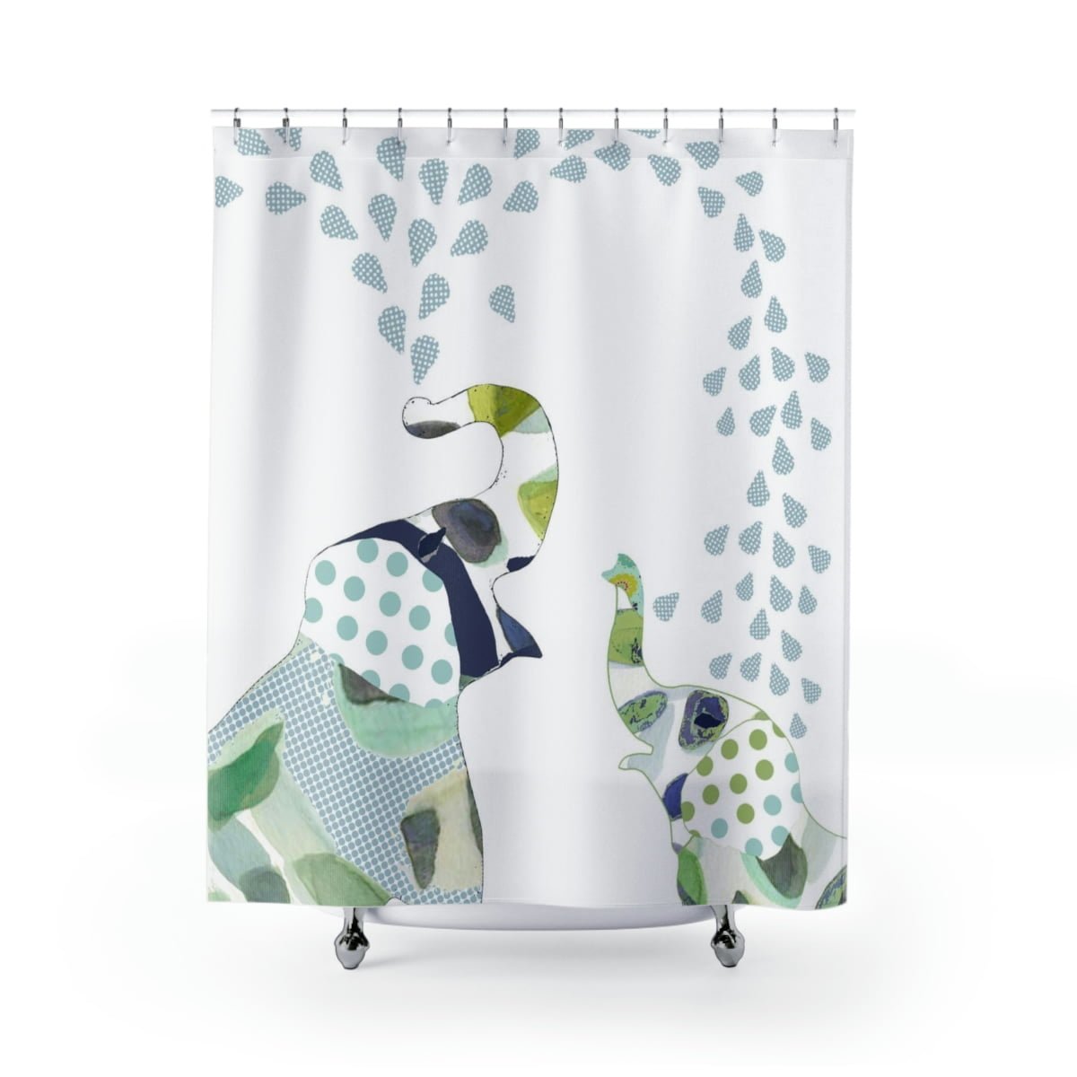 PREMIUM Kids Bathroom Fabric Shower Curtain – 71×74″ – Mold & Mildew Resistant – Waterproof – Cute Designer Elephant Water Shower Design