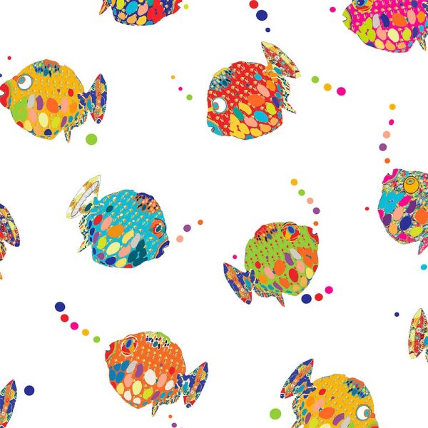 Kids’ Bathroom Fun Colorful Fish Fabric Shower Curtain -Water-Repellent, Washable, 12 Hooks – 72×72 & 66×72