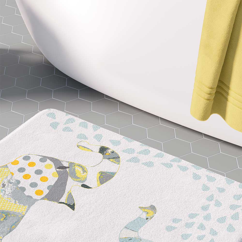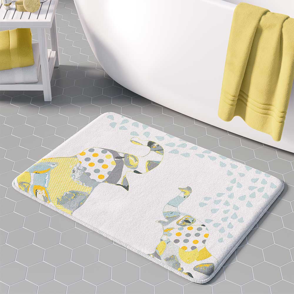 Kids’ Grey & Yellow Elephant Microfiber Bath Rug- Mold & Mildew Resistant, Quick Drying, Non-Slip