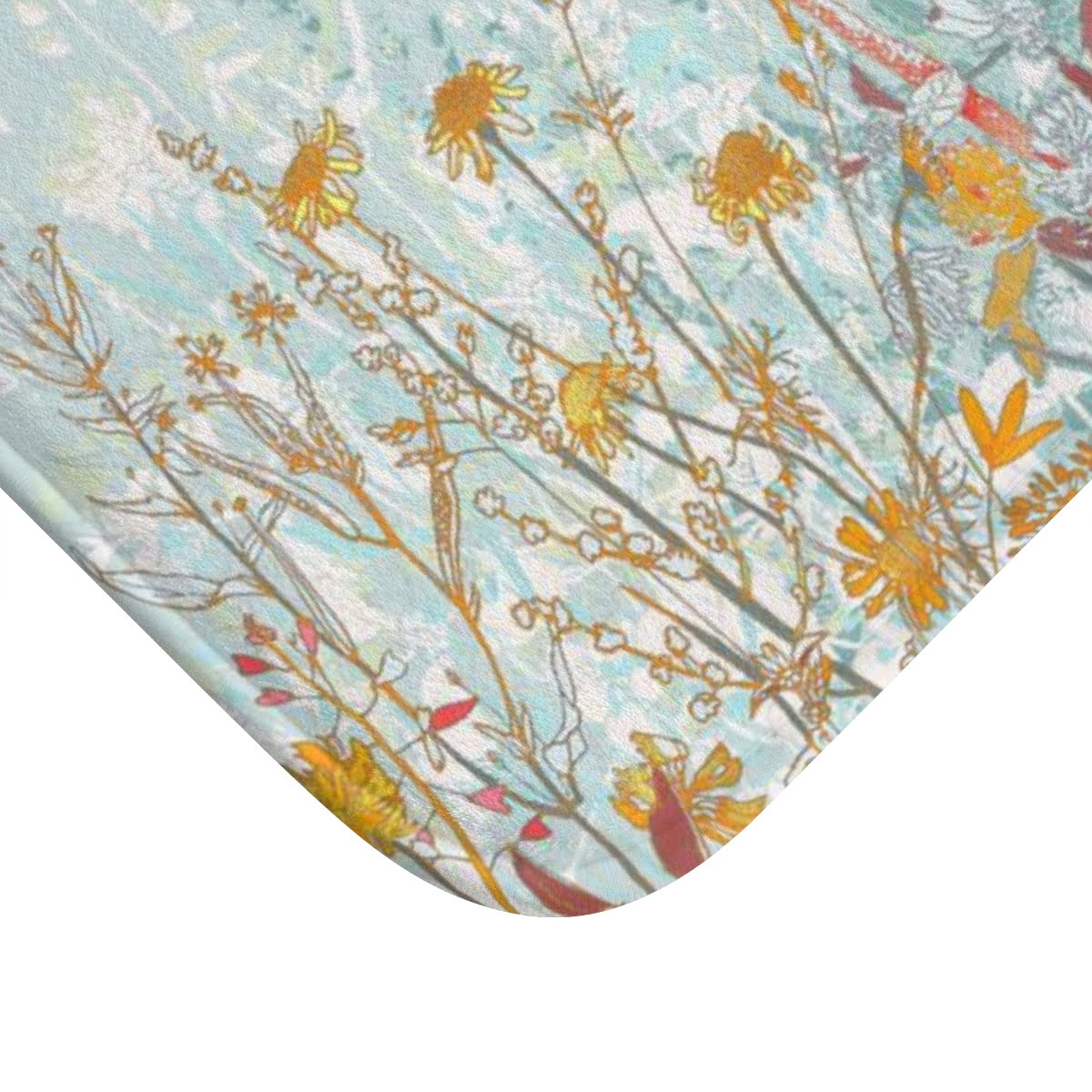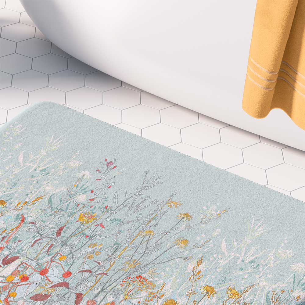 Microfiber Non-Slip Bath Mat – Elegant Blue Wildflower Floral Pattern, Cottage Garden Vibes, for a Sophisticated Bathroom