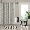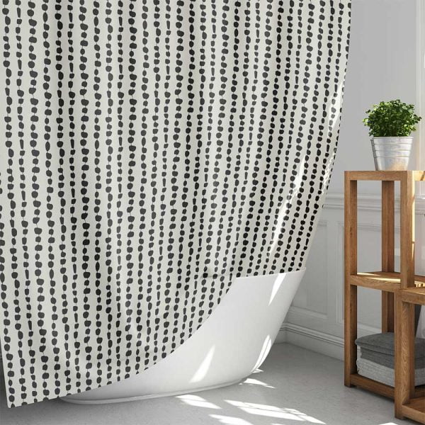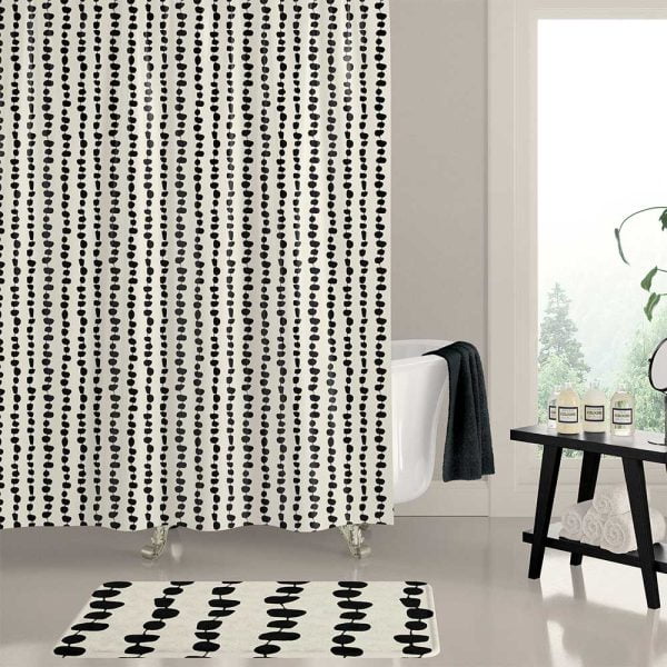 Modern Black And Cream Fabric Shower Curtain With Abstract Minimalist Artist Designed Stripes Pattern – Water Repellent, Shower Rings And Hooks Included