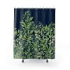 PREMIUM Luxurious Fabric Shower Curtain In Navy Blue With Leafy Green Leaves – Elegant Mold & Mildew Resistant – Waterproof – 71×74 inches Fabric