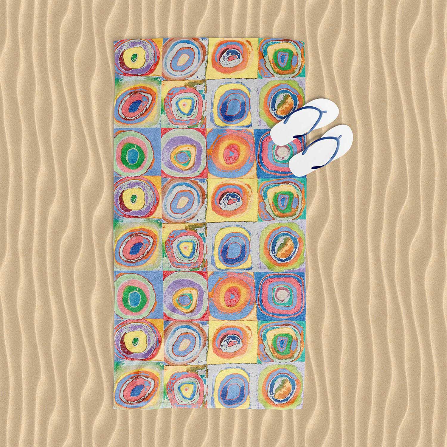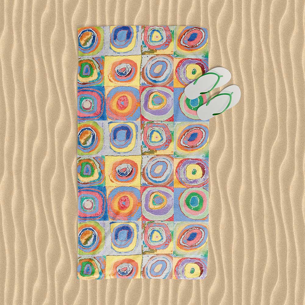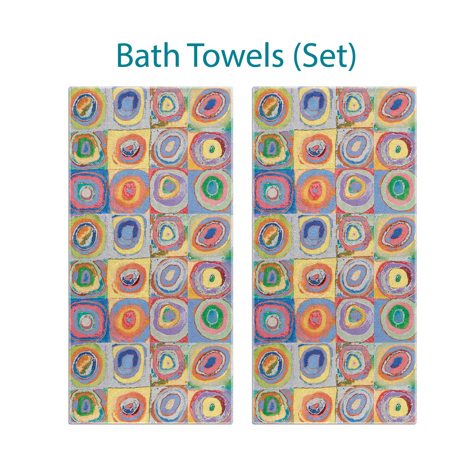 Vibrant Abstract Geometric Towel Set For Beach Or Bathroom: Colorful Velour Face & Absorbent Cotton Terry Loop