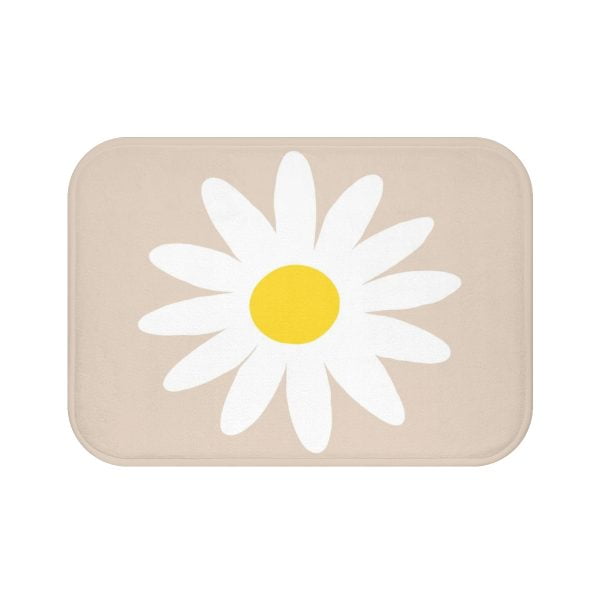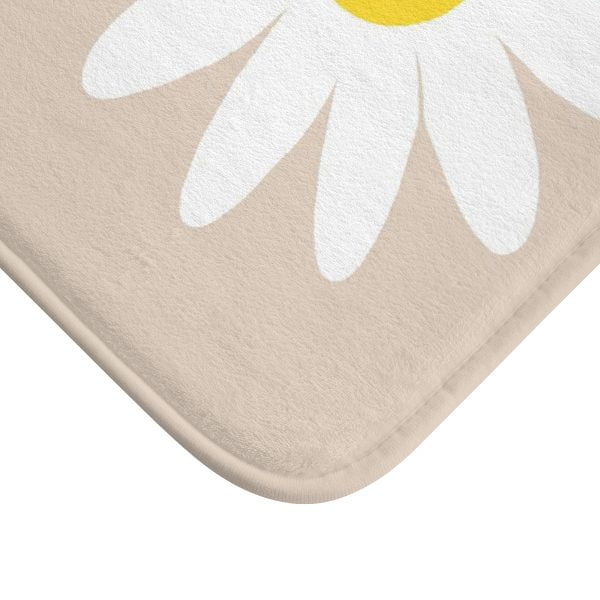Non-Slip, Memory Foam, Quick Drying Washable Microfiber Bath Mat With Beige, White And Yellow Daisy Print For A Modern Boho Bathroom Vibe