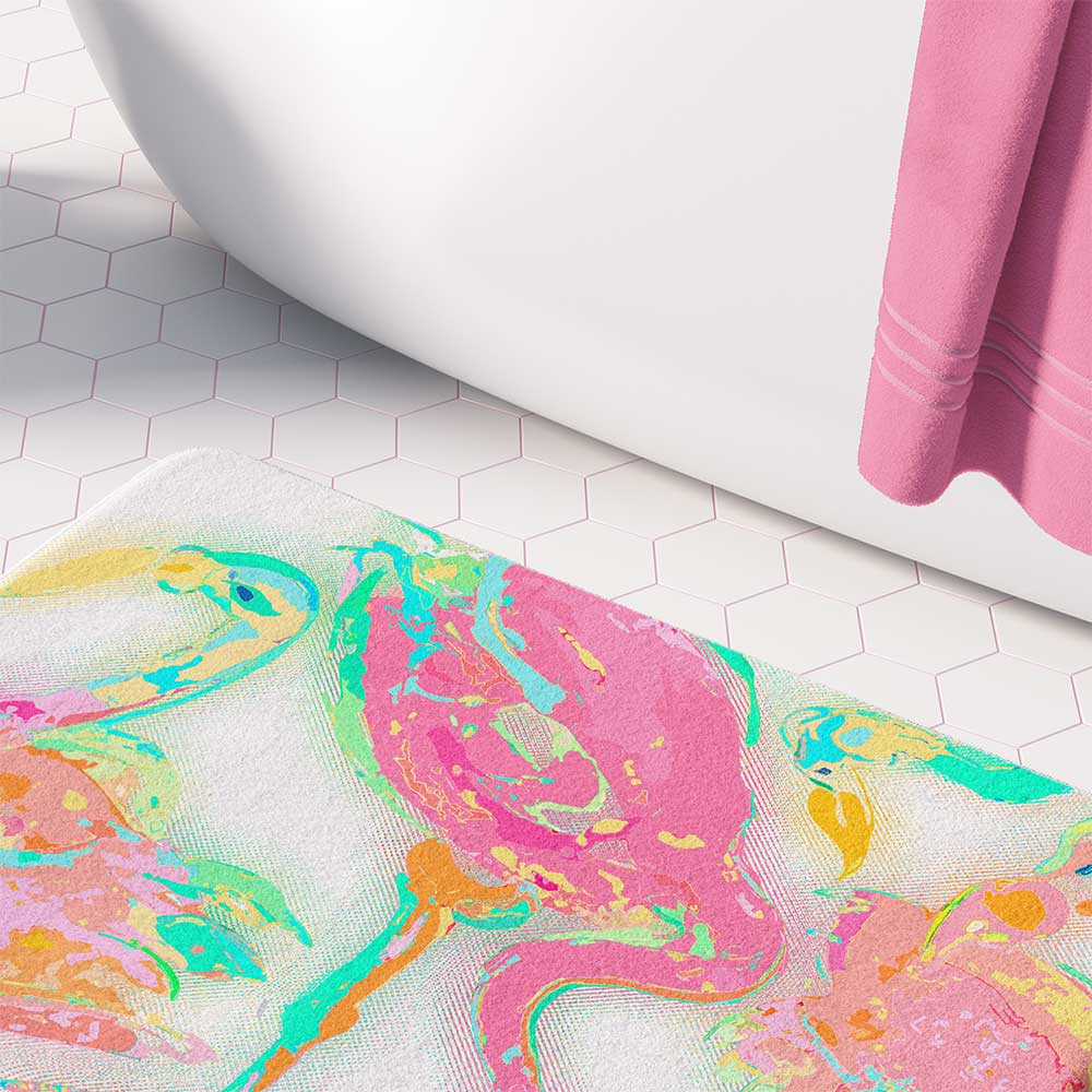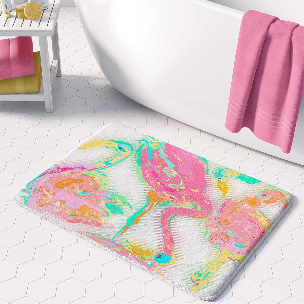 Non-Slip Vibrant Pink Flamingo Tropical Microfiber Bath Mat – Mold & Mildew Resistant, Quick Drying