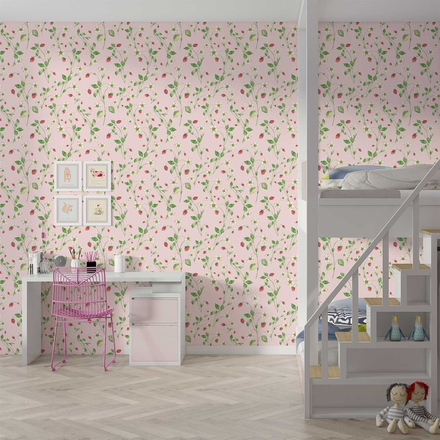 Add a playful charm to your girl’s room with our adorable strawberry floral kid’s wallpaper. Available in peel and stick, traditional, and pre-pasted options, it’s easy to install, durable, and perfect for bedrooms, nurseries, and playrooms. Transform any space with this cute, stylish design today!