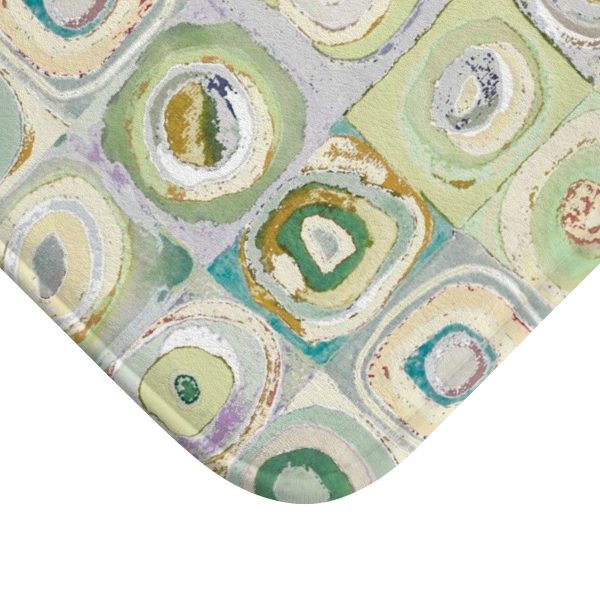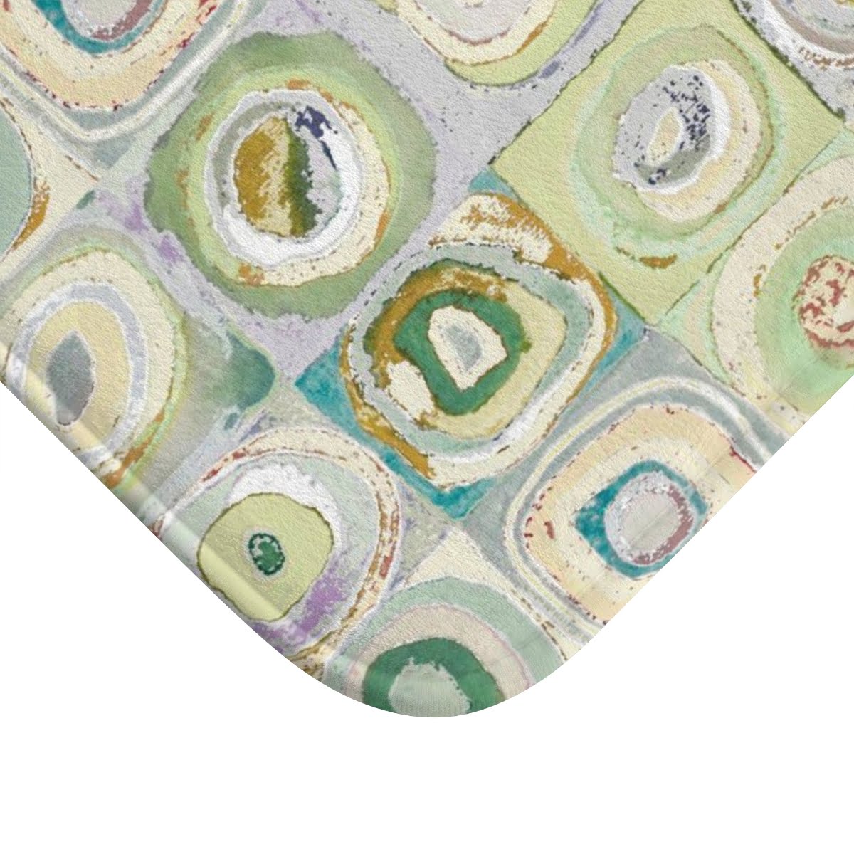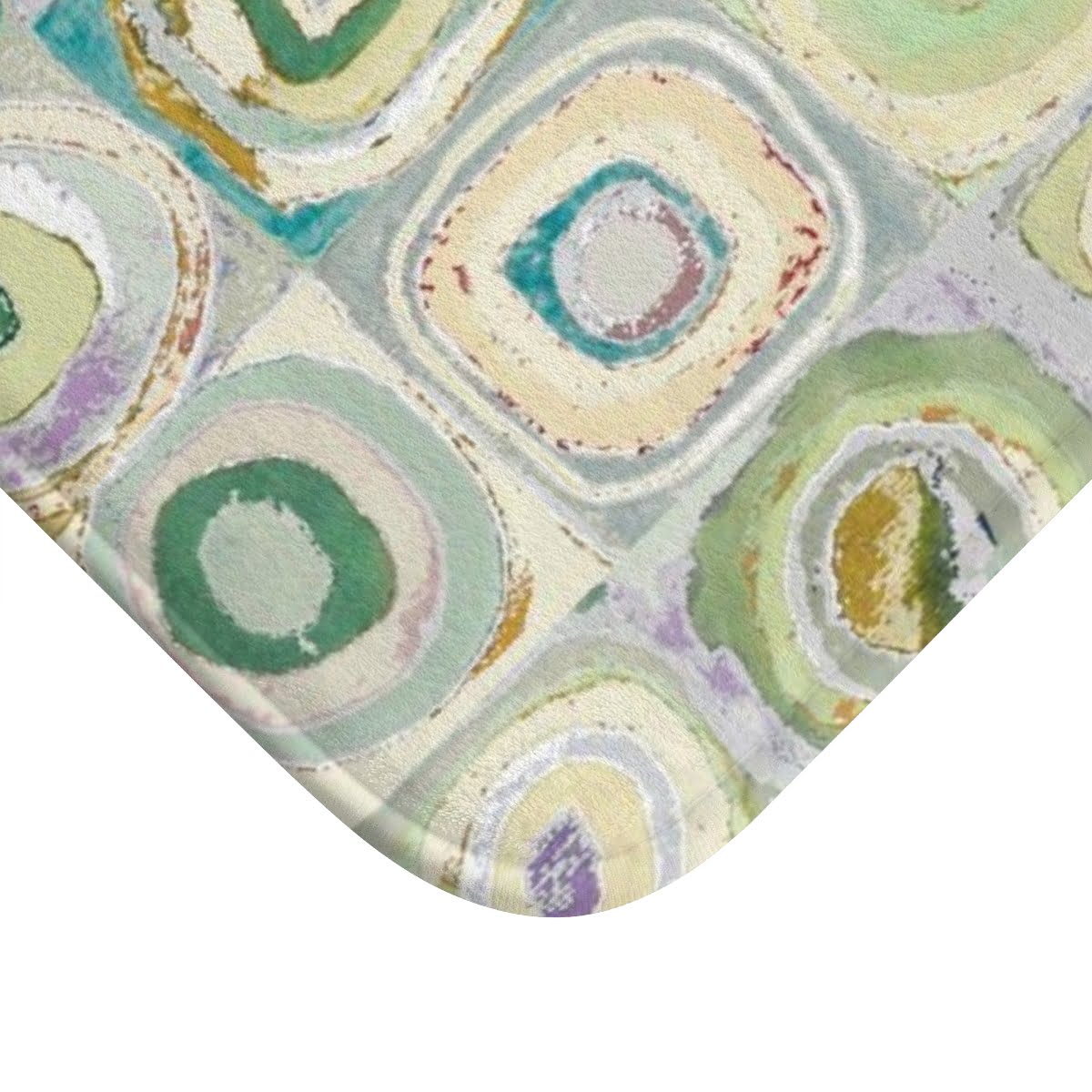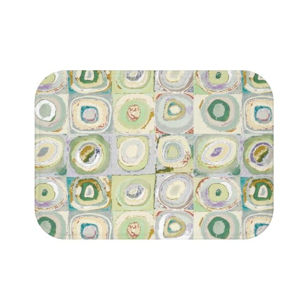 Plush Microfiber Bath Mat with Green Kandinsky Geometric Abstract Pattern – Artist Designed, Non-Slip Bathroom Rug