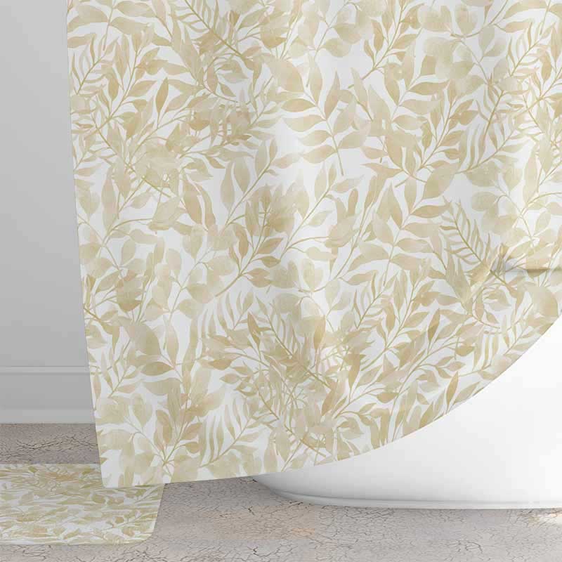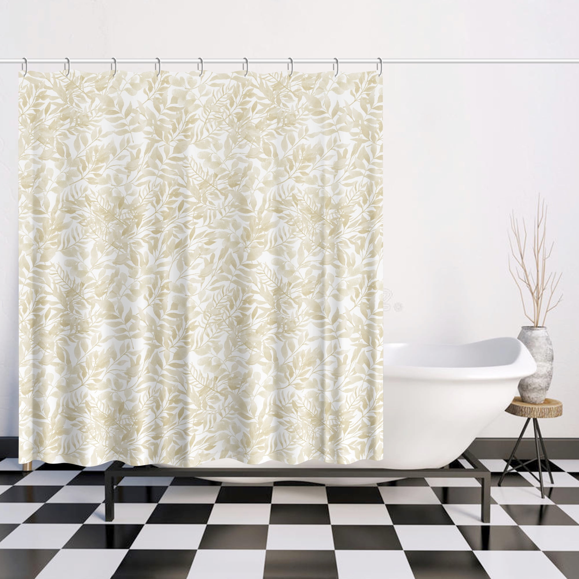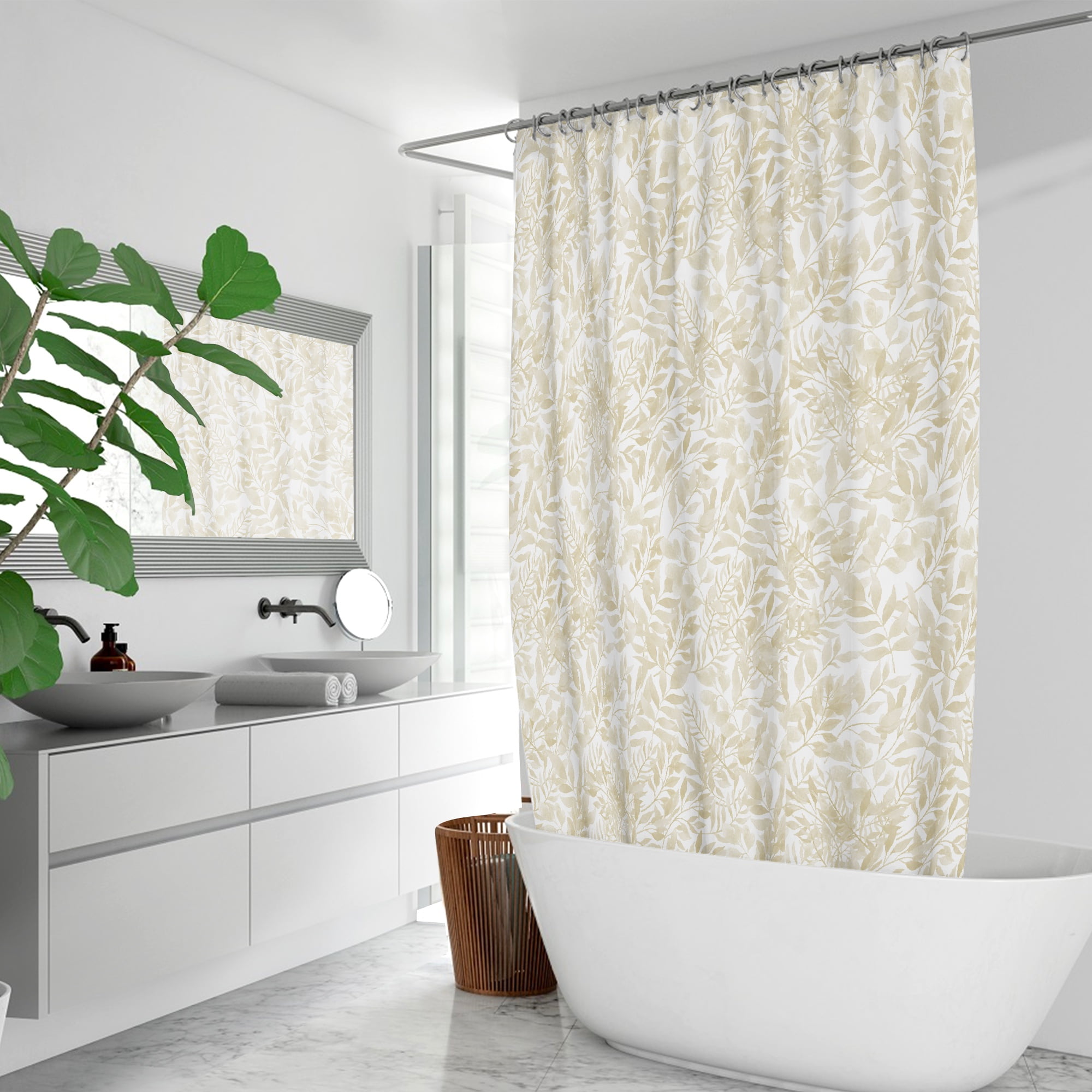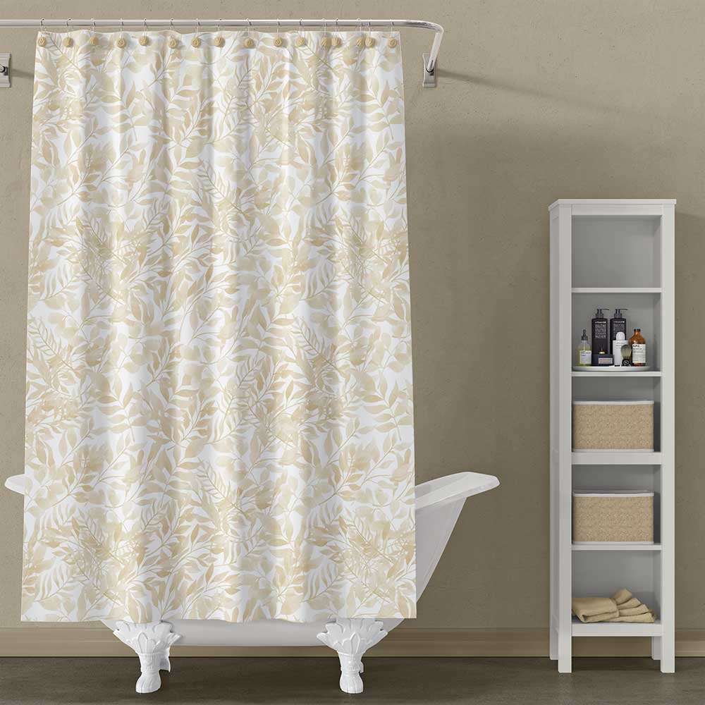 72 x 72 Artist Designed Beige Watercolor Botanical Shower Curtain With Water Repellent Fabric And Shower Rod Hooks Included.