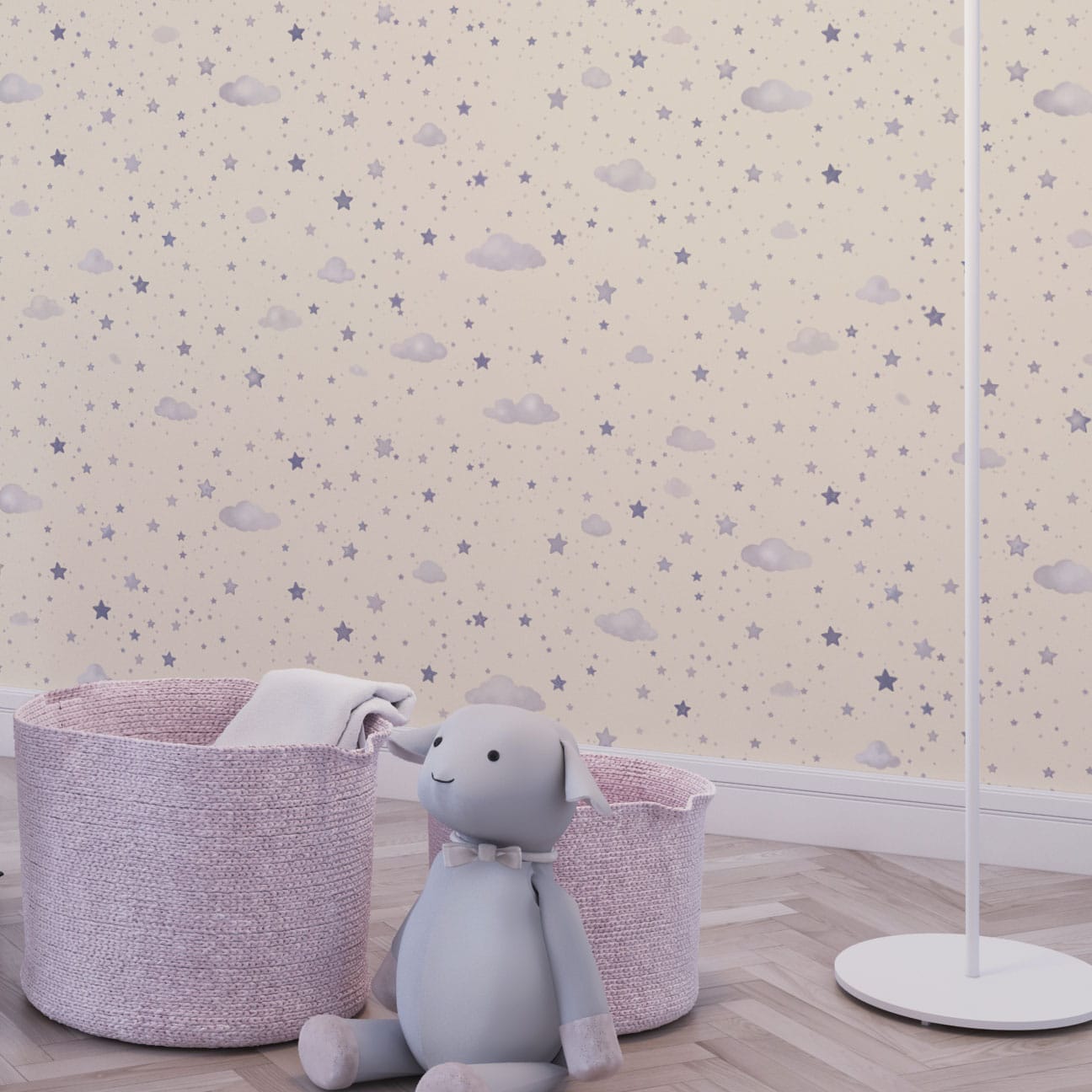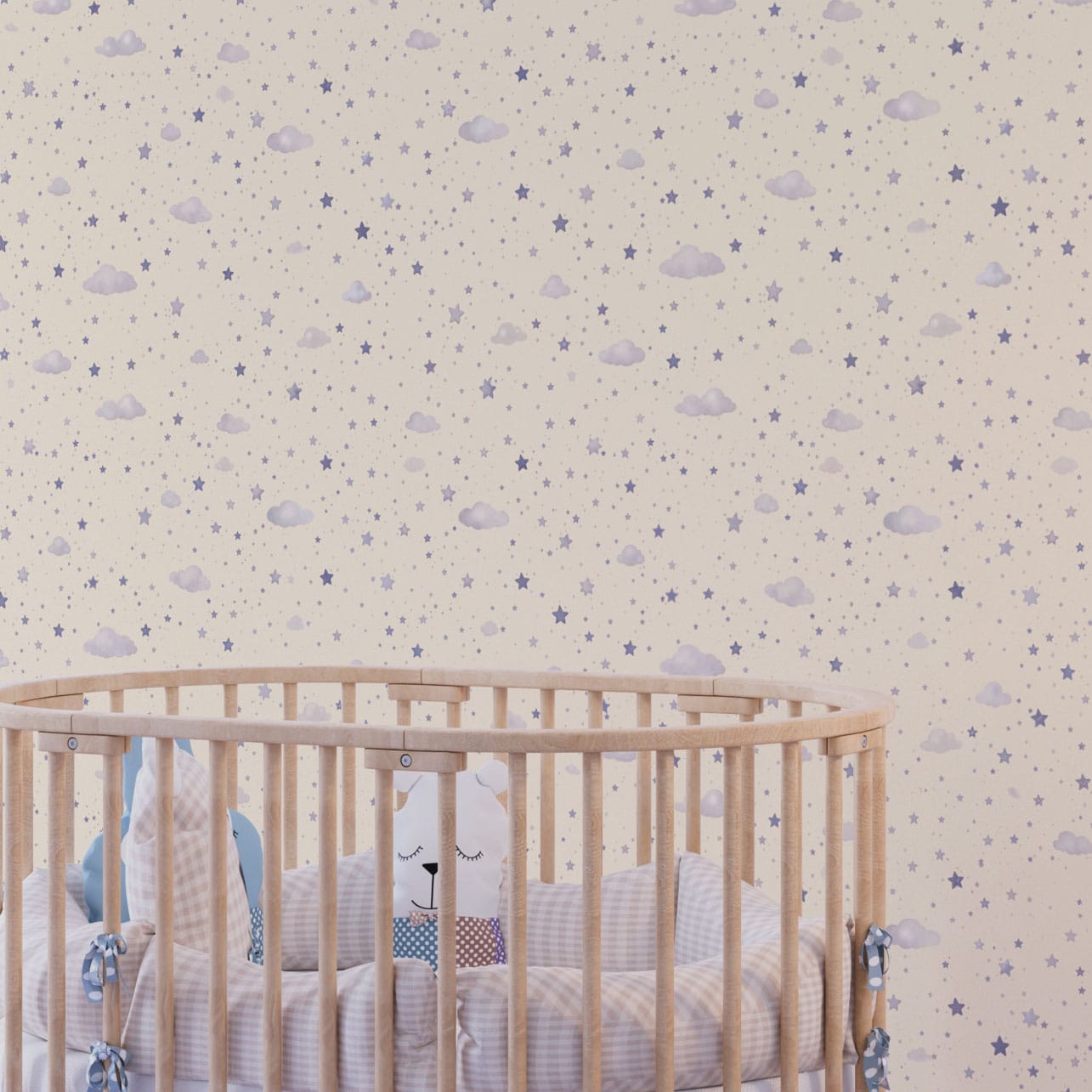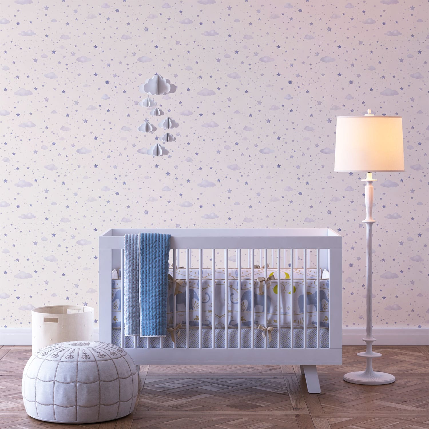 A soothing and gender-neutral dreamy wallpaper that will grow with your child.