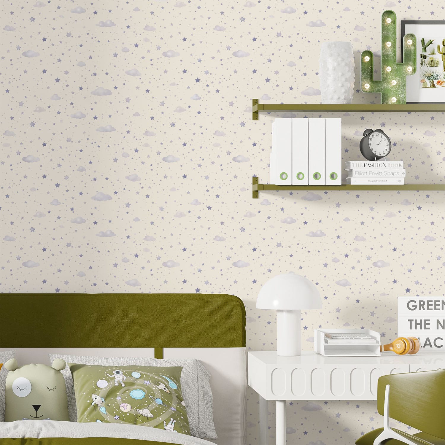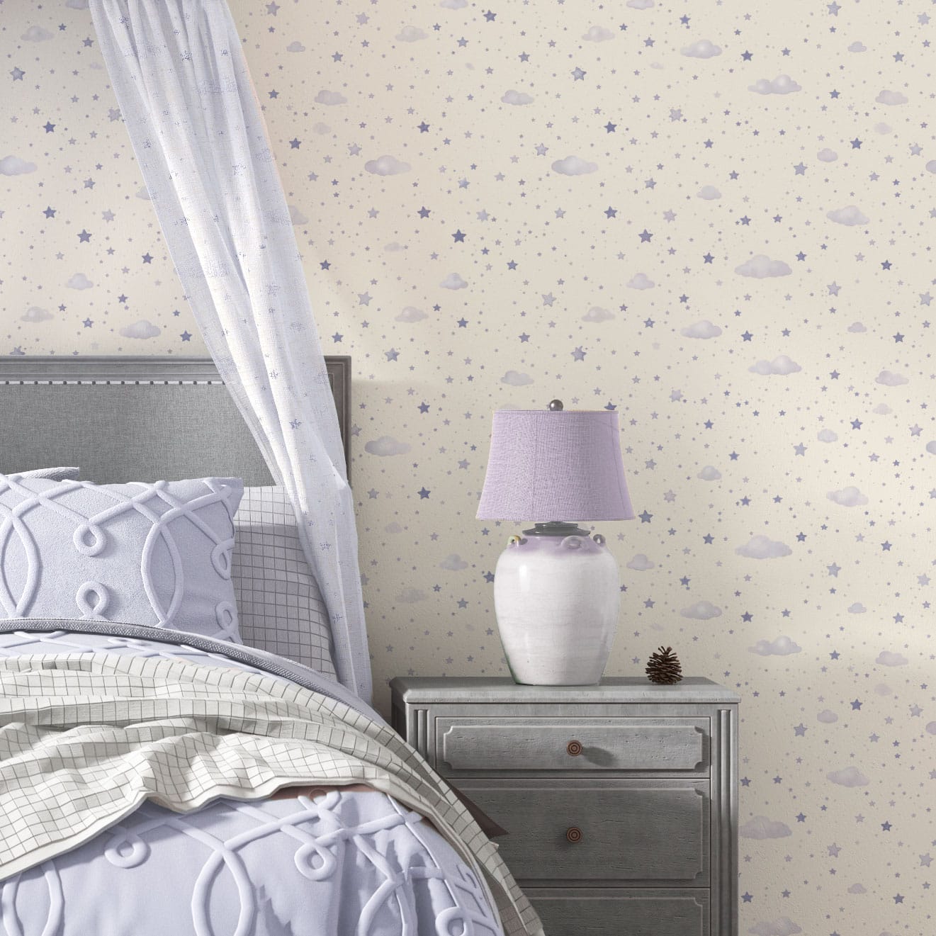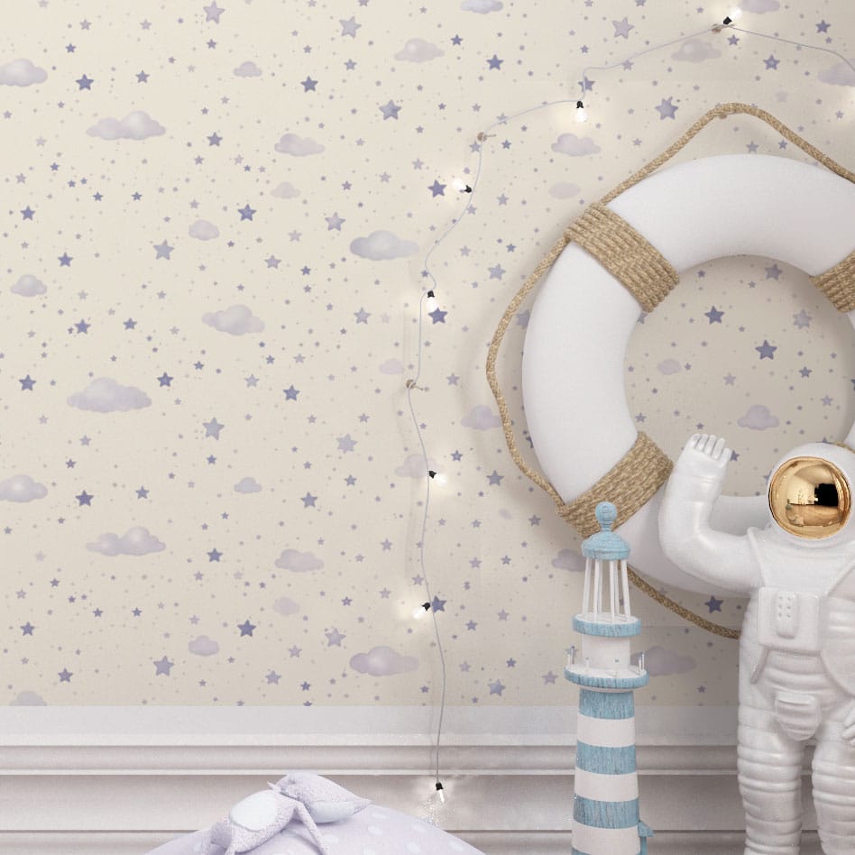 A soothing and gender-neutral dreamy wallpaper that will grow with your child.