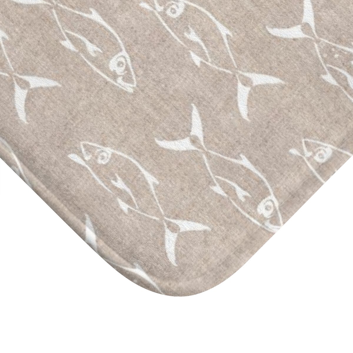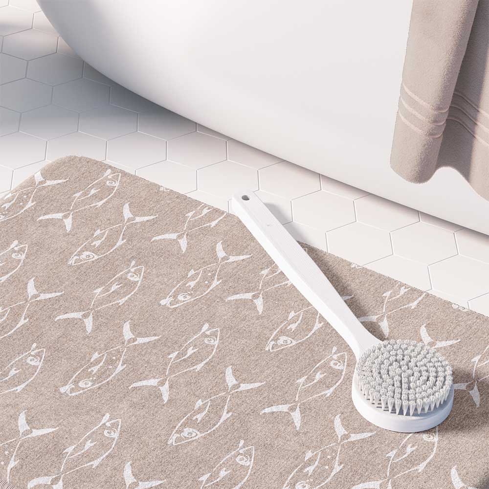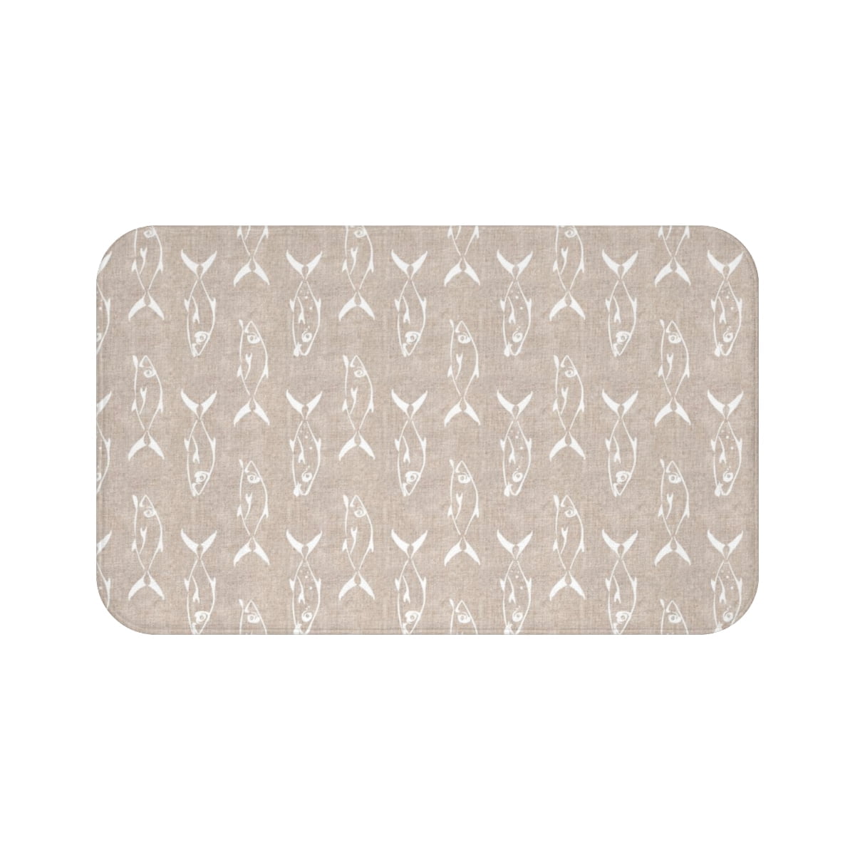 Super Soft Coastal Fish Beige Bathroom Non Slip Bathmat For A Beach House Vibe!