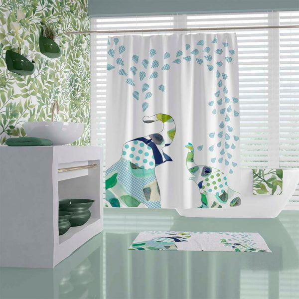 Toddler Boys Bathroom Shower Curtain 72 x 72 Inch Blue And Green Cute Elephant Decorative Bath Curtain With Polyester Waterproof Fabric And 12 Hooks