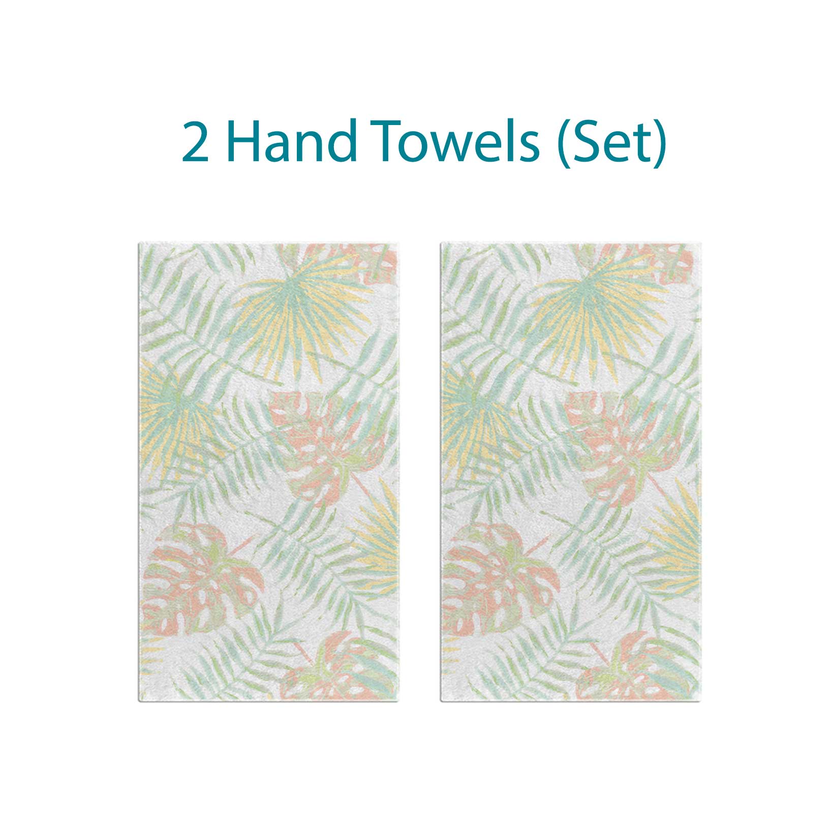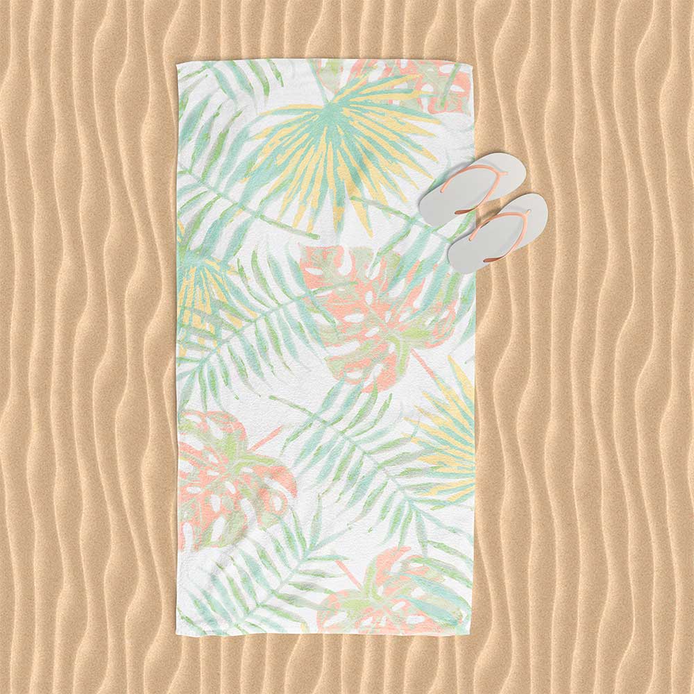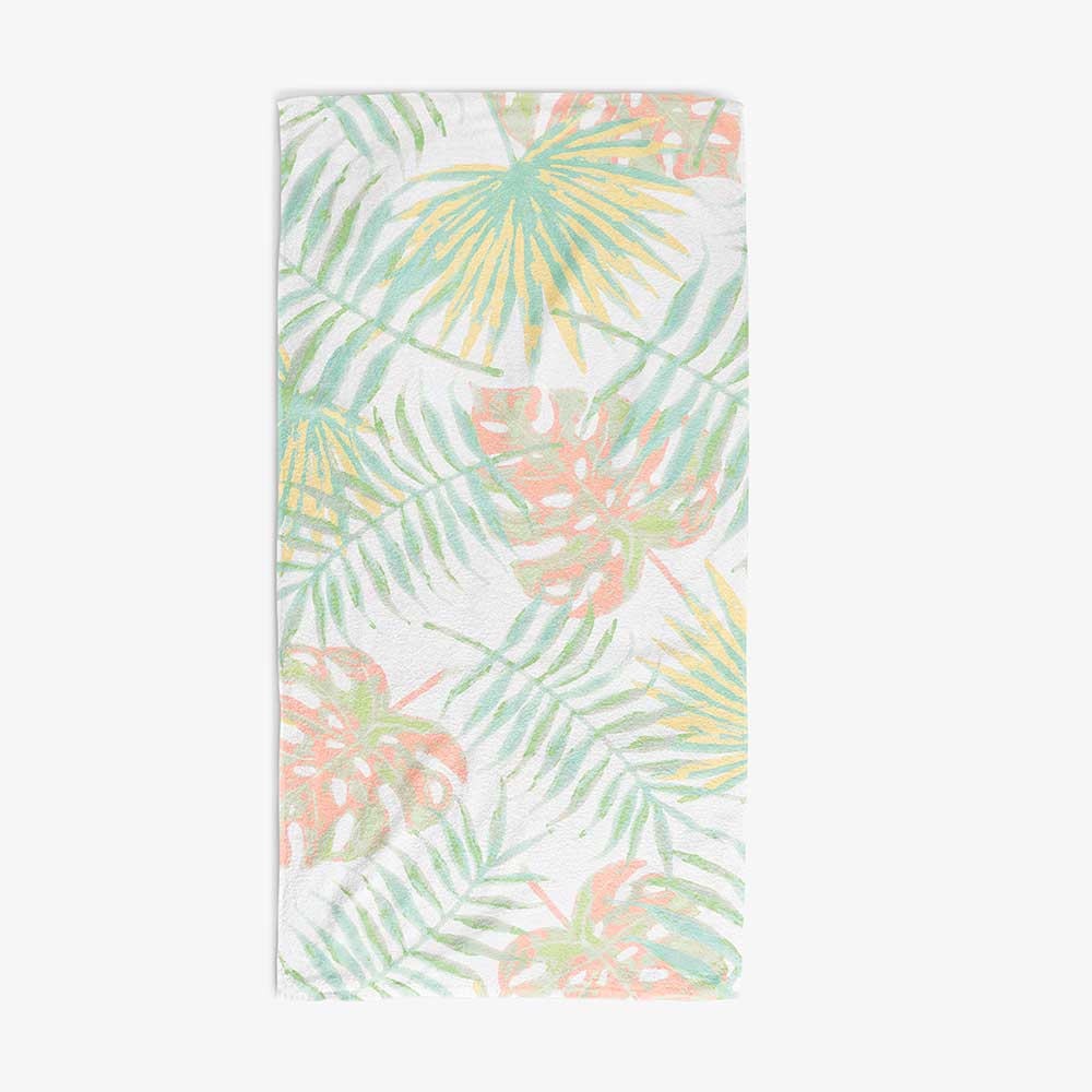 Tropical Apricot Pink And Green Palm Leaves Towel Set: Beach, Bath, Hand – Cotton And Velour