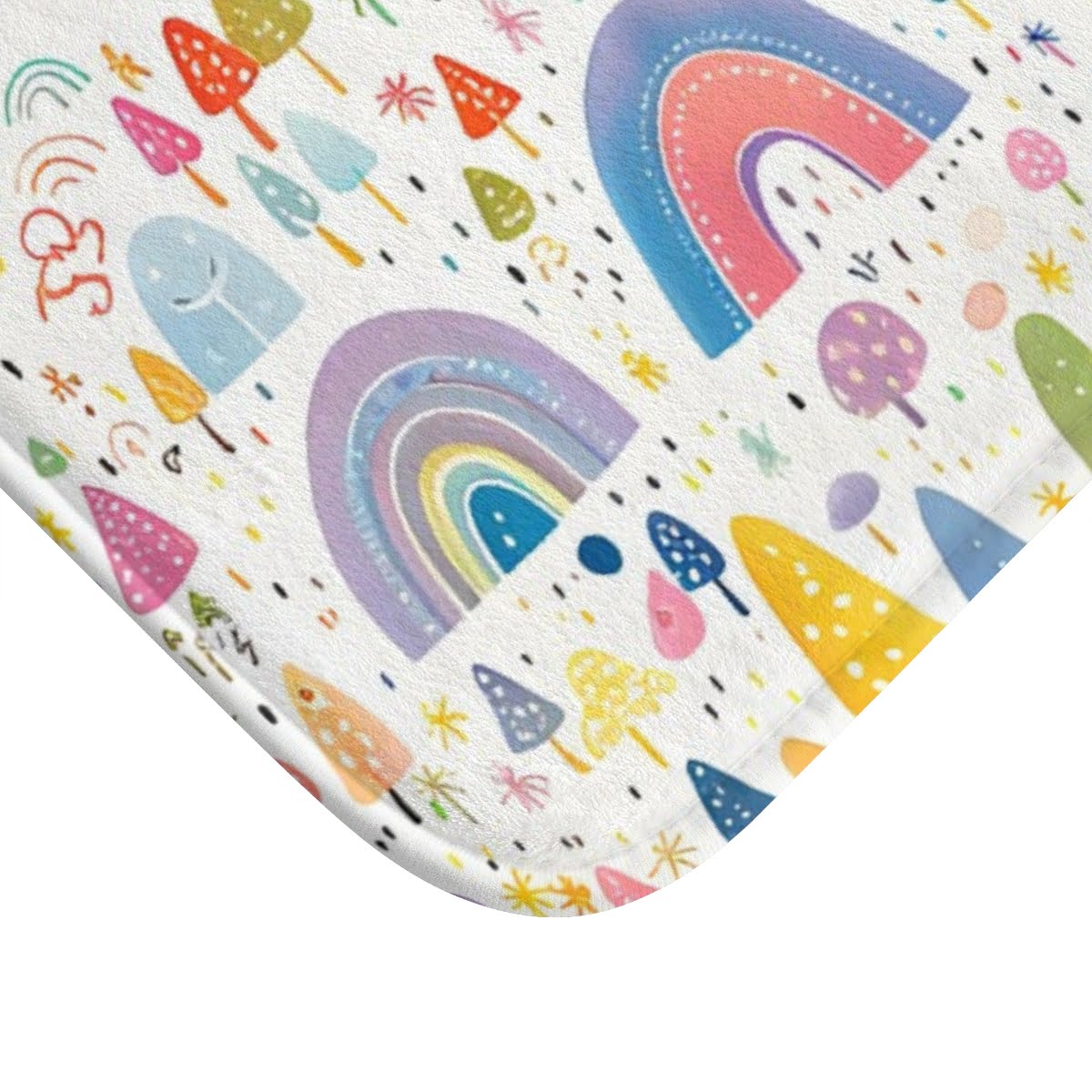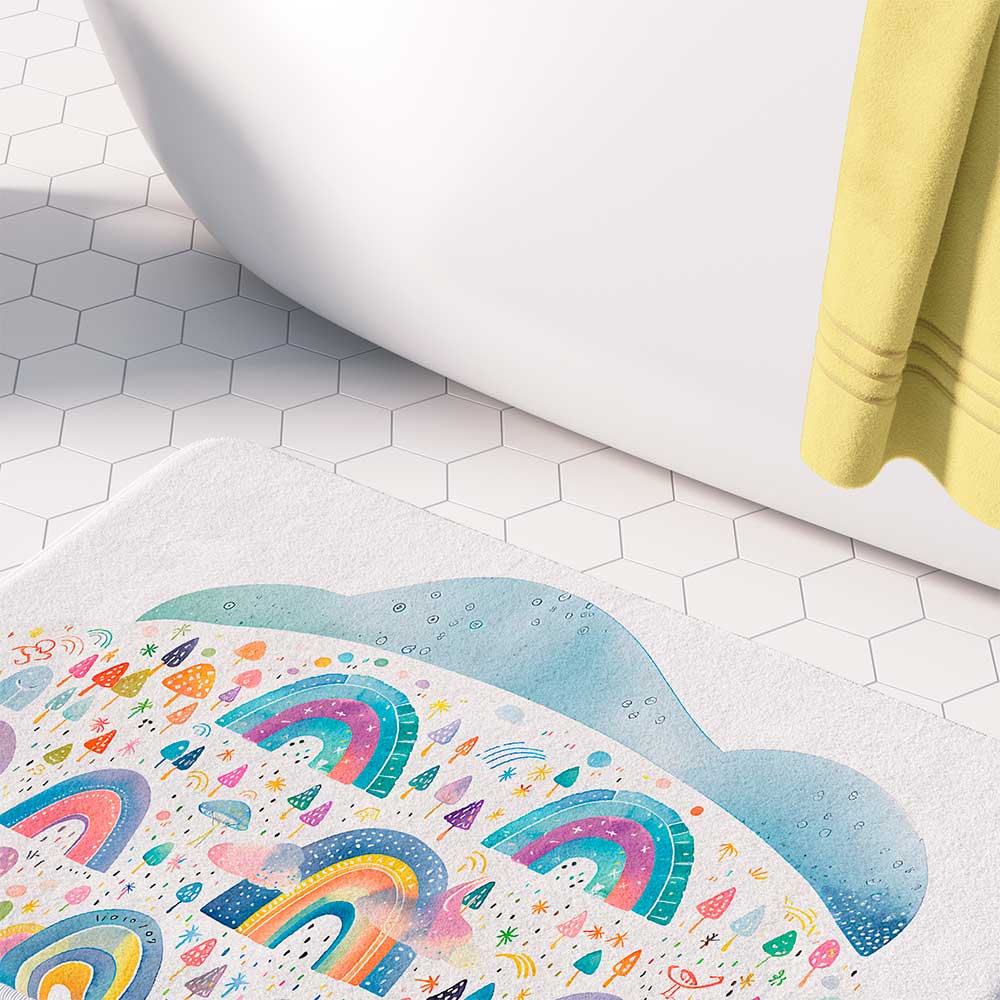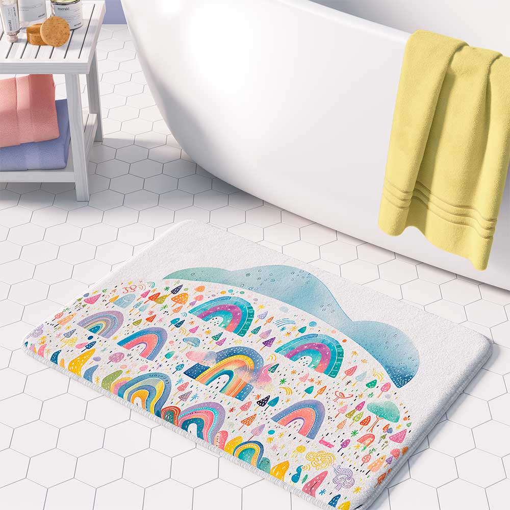 Whimsical Rainbow Bath Mat for Childrens Bathroom Decor – Colorful, Fun Non Slip Mold Resistant Washable Microfiber