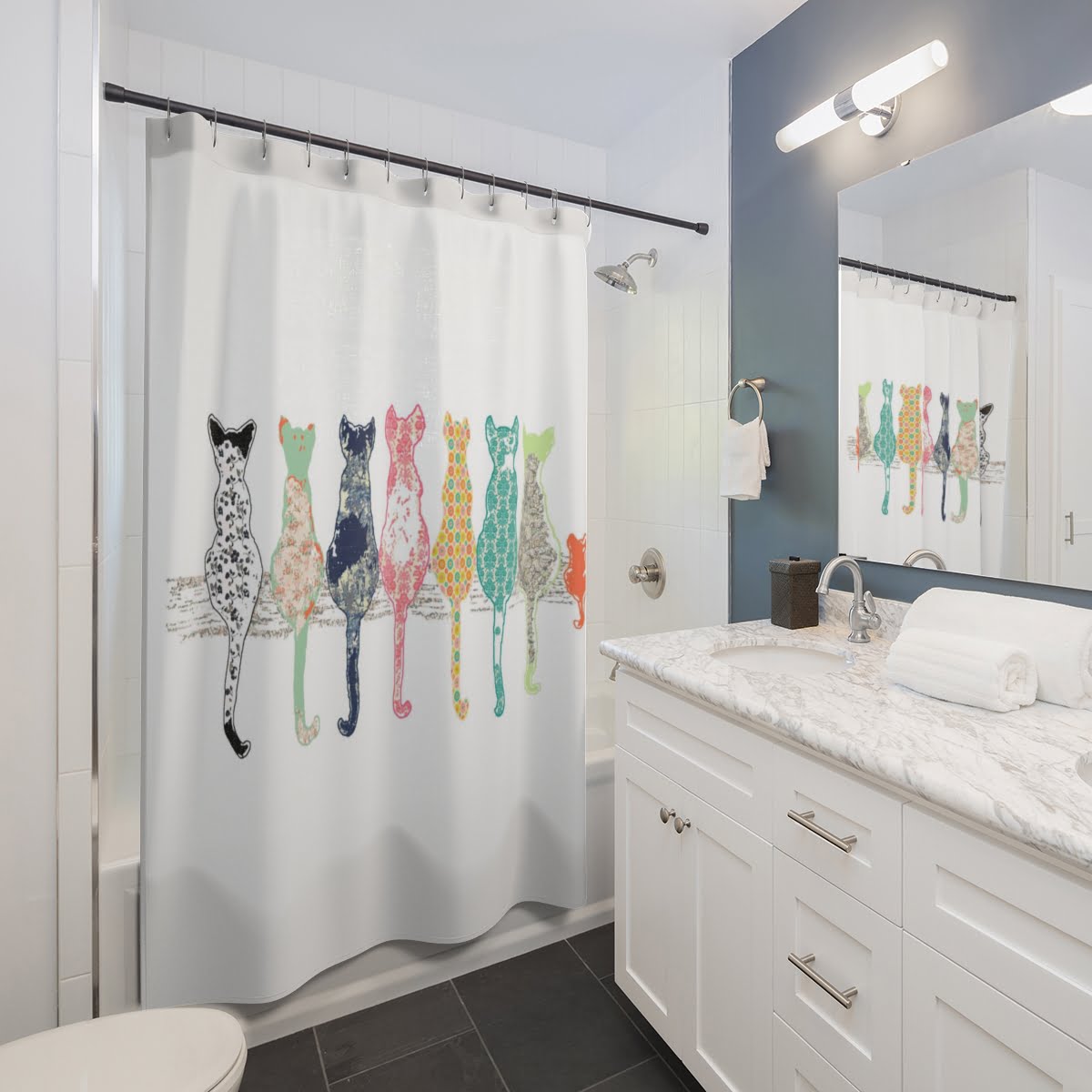 This shower curtain is here to add an original touch to any bathroom with your designs. Made with highly durable polyester, this curtain stays like new for a long time to come and is a perfect printing area for your art.