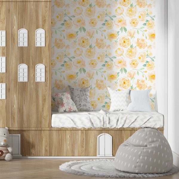 Yellow Floral Wallpaper – Elegant Peony Wall Decor